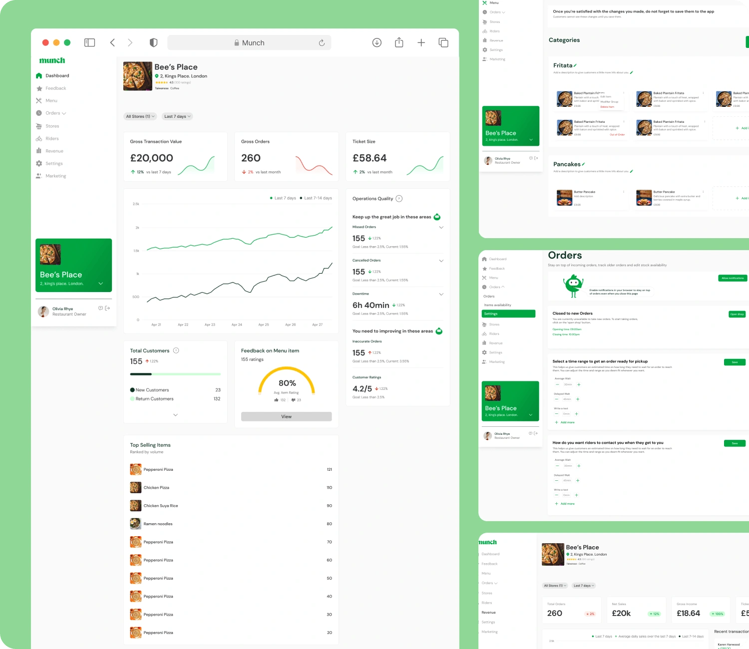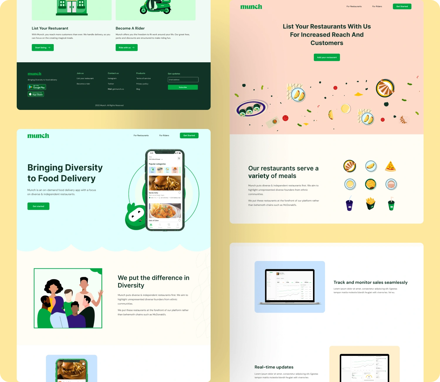 Branding, UI design, and full-stack development for Munch's app and website, delivering a seamless user experience and cohesive brand identity across platforms.