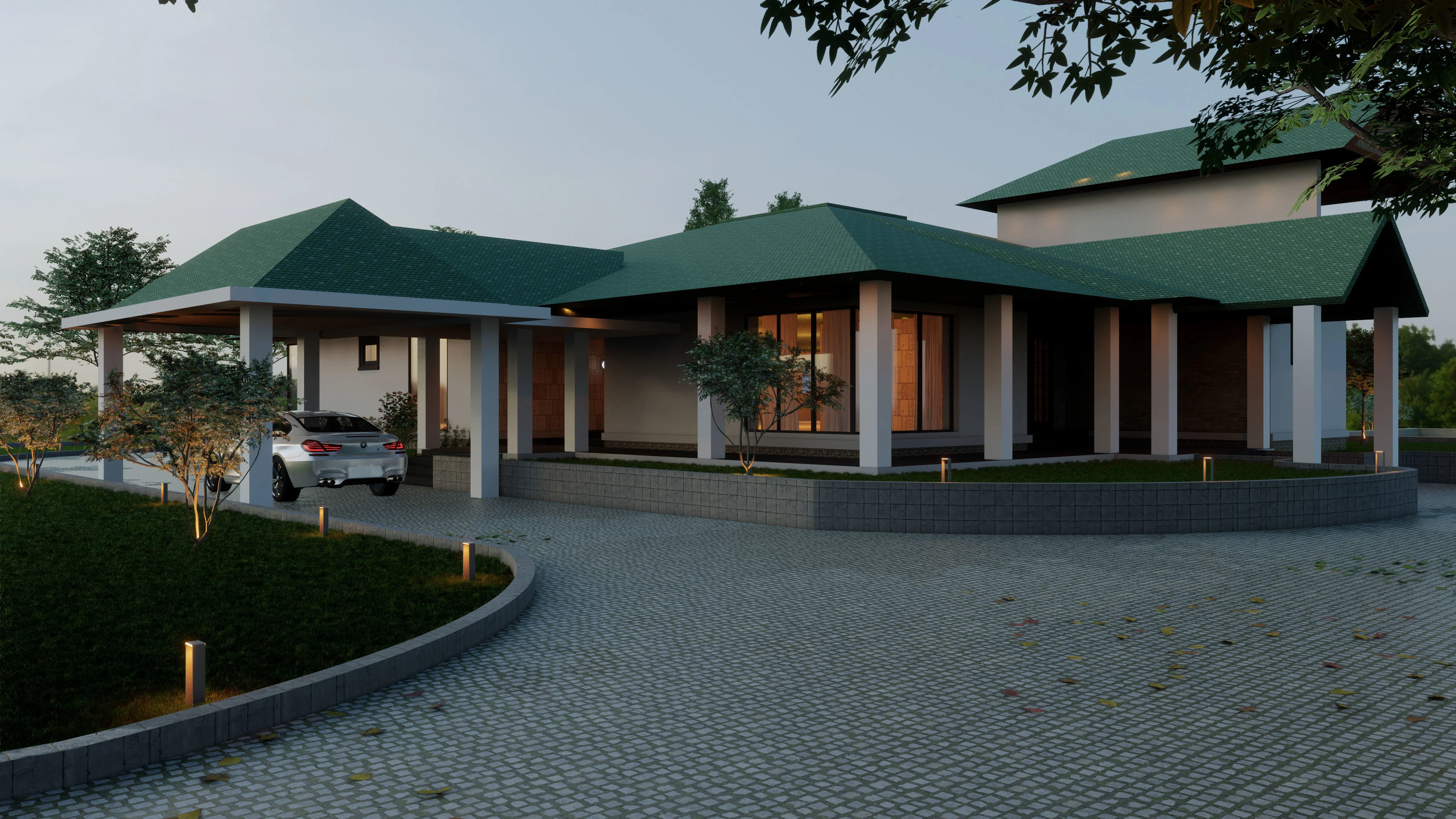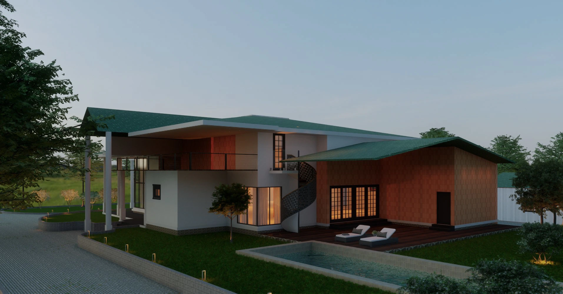 This project is a vacation home that is situated on a low-lying hillside of Mudigere. The brief was to create a render and elevations for the farmhouse.