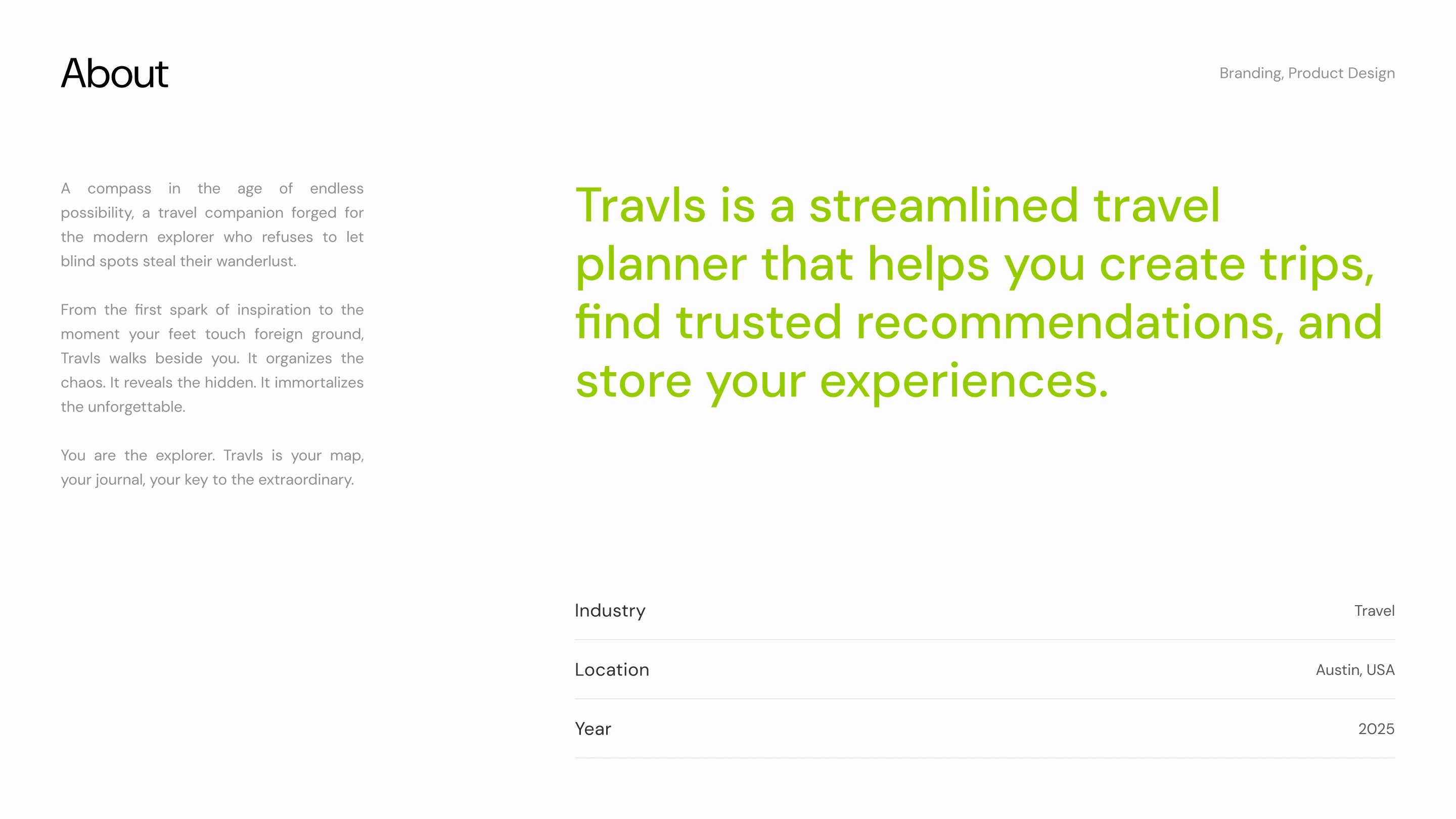 Travls as a brand allowed us to turn a complex travel routine into something simple and enjoyable.