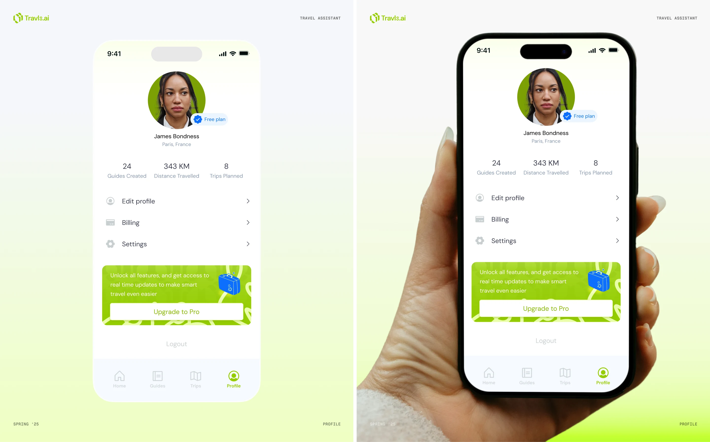 The final product is a mobile app and brand system built around clarity and ease. Travls gives users a central place to manage trips, explore new destinations, and navigate unfamiliar areas with confidence.