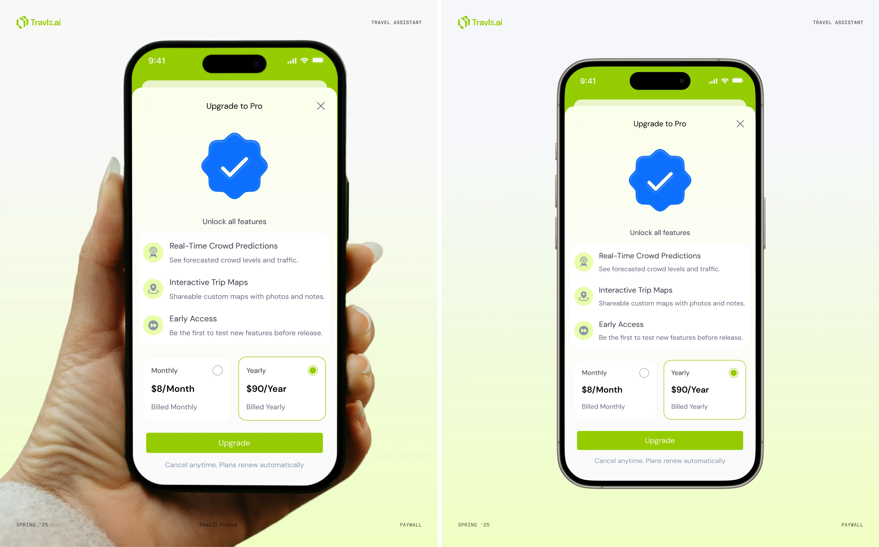 Travls was a chance to translate real travel habits into a product that solves everyday problems. The project taught me how much clarity matters, especially when people rely on an app during trips. It reinforced the value of designing with the user’s mental load in mind and building systems that guide instead of overwhelm.