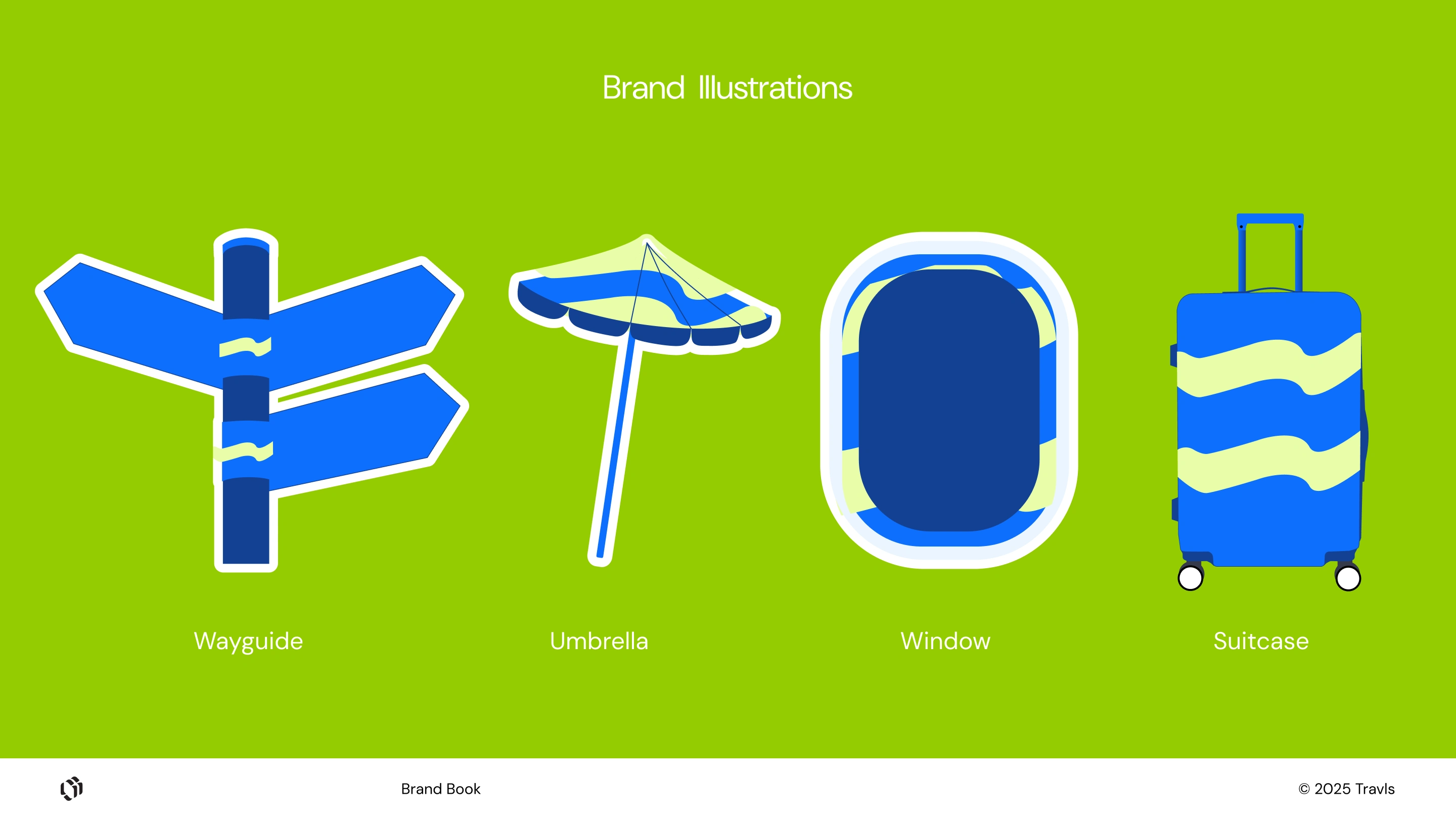 Wayguide, Umbrella, Window and Suitcase Illustrations.