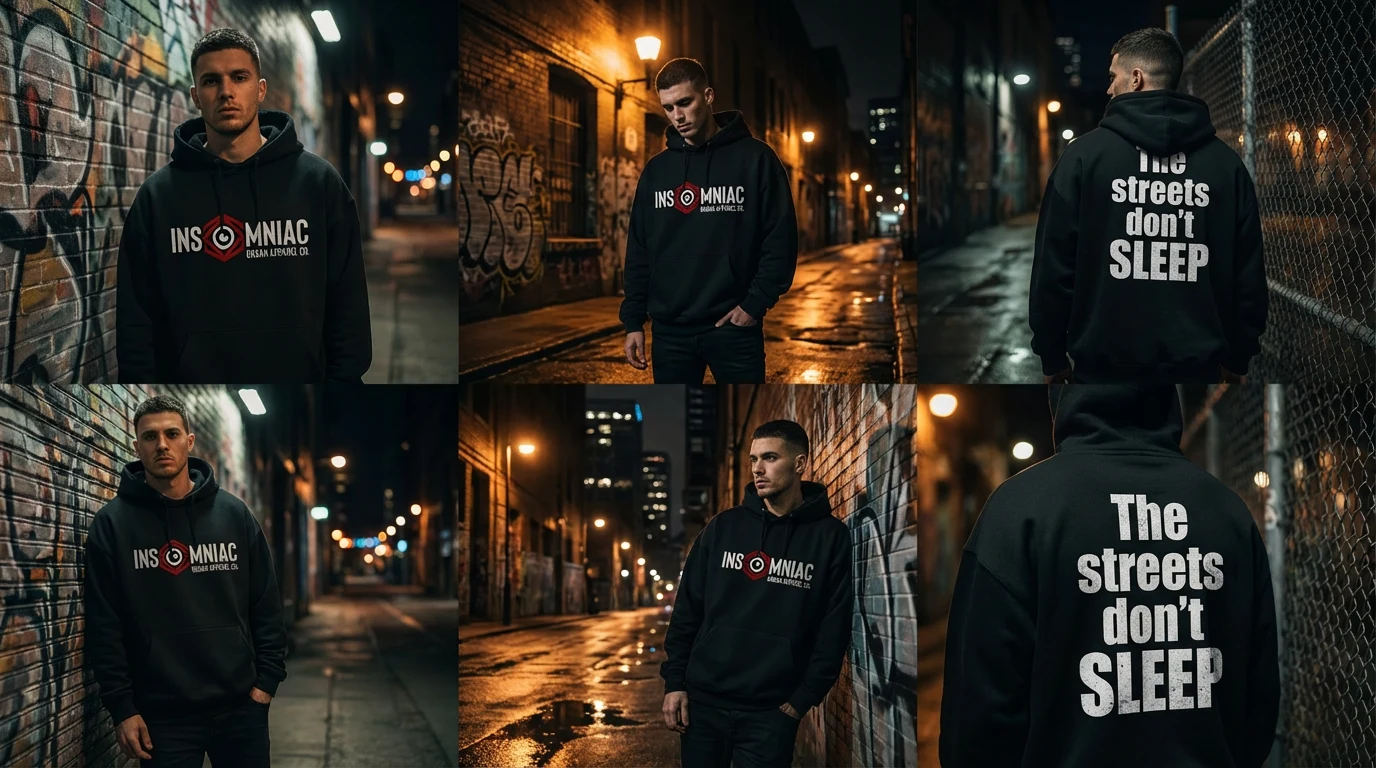 Insomniac isn't for everyone—and that's the point. We position the brand as a badge of honor for those who choose hustle over sleep, creation over rest. This is streetwear with substance, worn by people who have something to prove and the discipline to prove it.