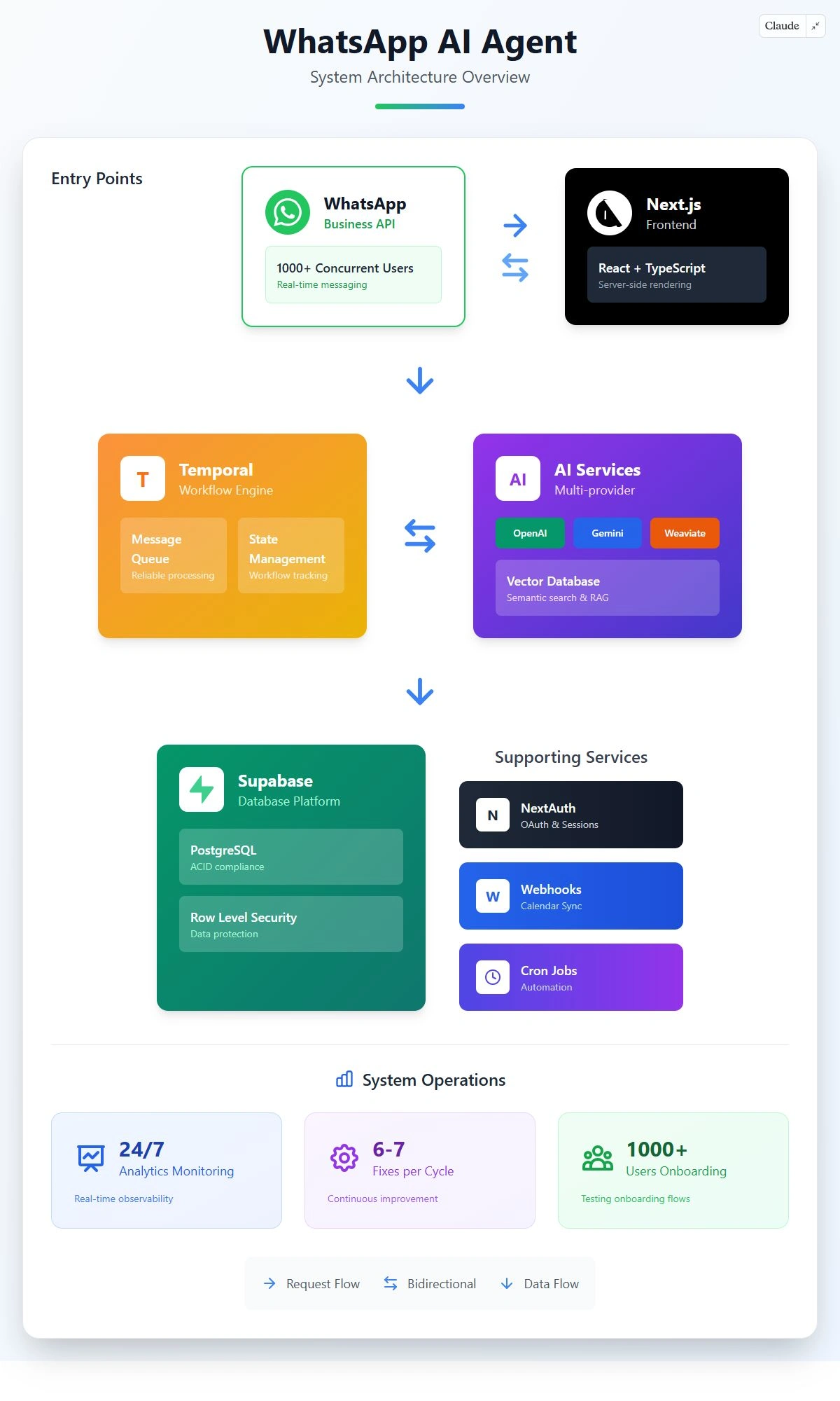 Led frontend development and helped build full stack WhatsApp AI agent for Chronicler Labs. Developed Temporal workflows + Meta API integration for automation.