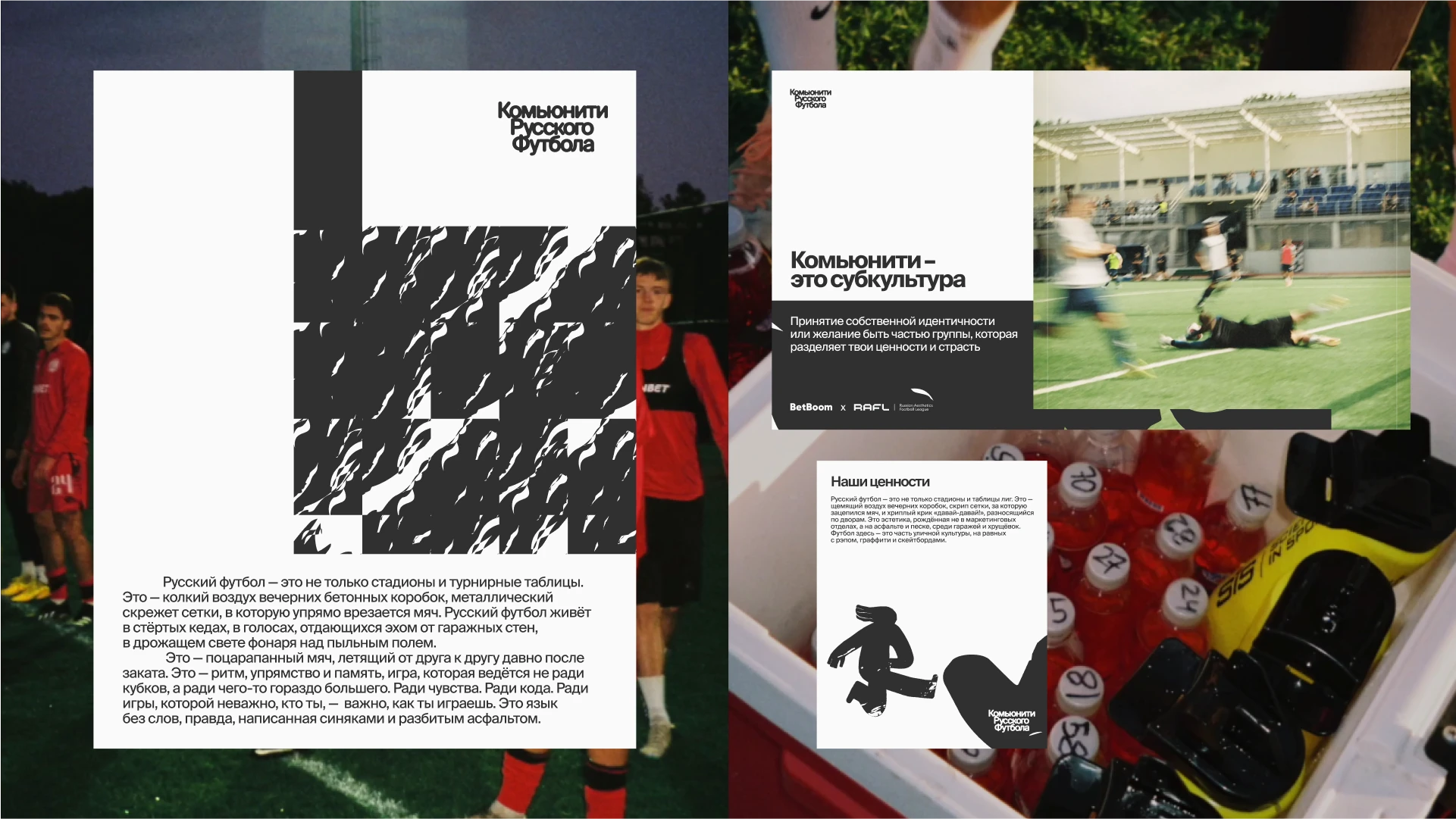 The identity combines football’s raw, emotional energy with contemporary graphic language. I drew inspiration from streetwear aesthetics, match-day visuals, and the DIY spirit of creative communities.