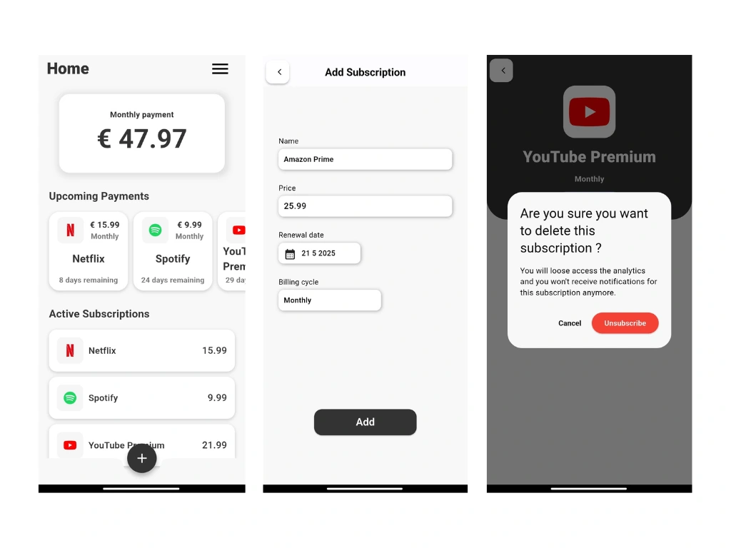 Subscription Tracker helps you monitor all your subscriptions, track renewal dates, and stay on top of recurring payments—simple, clear, and stress-free.