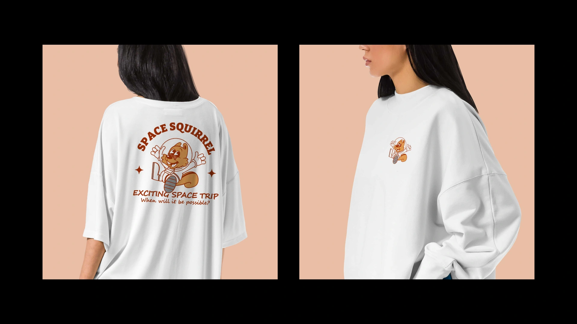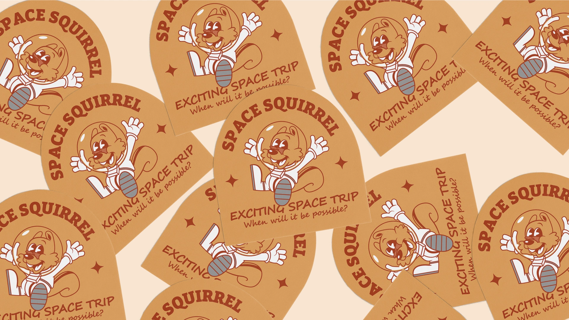 Created a brand mascot featuring a cute space squirrel on an interstellar journey, designed to capture charm, curiosity, and a sense of cosmic adventure