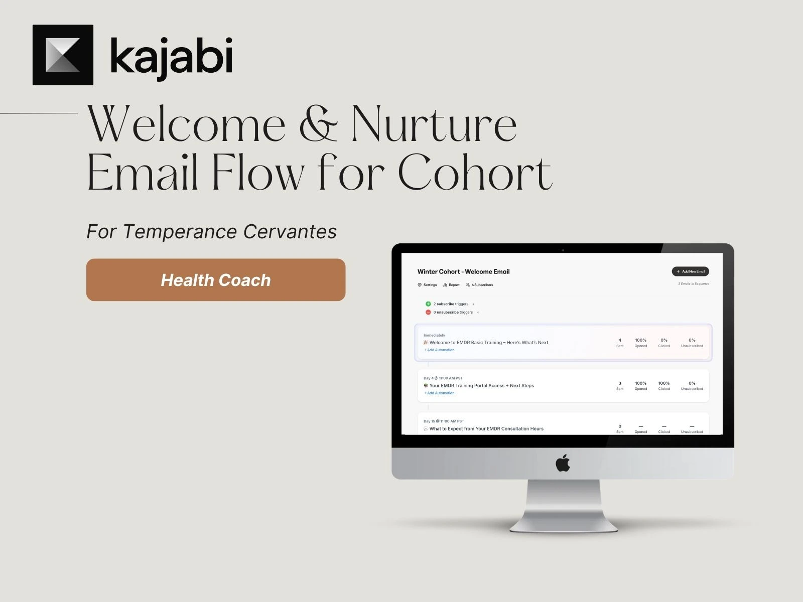 Each new cohort had a fully automated, hands-off email system — from purchase to graduation — ensuring consistent engagement and freeing up the client’s time.