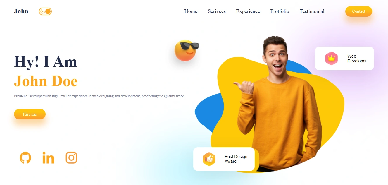 A sleek and modern personal portfolio website built with React and Tailwind CSS. Fully responsive and optimized for mobile devices