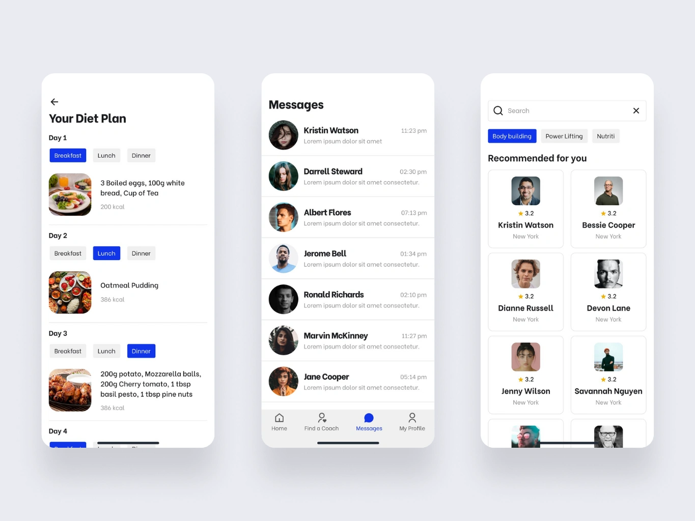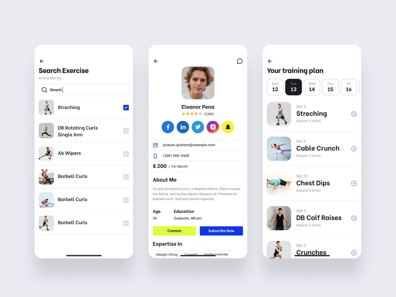 FitPro is a fitness and wellness mobile application designed to help users improve consistency in their workout routines and stay motivated toward their health goals. The app features personalized training programs, daily calorie and step tracking, and real-time progress analytics. It also includes a trainer discovery system, allowing users to browse certified coaches, compare specialties, and book sessions directly through the app.
