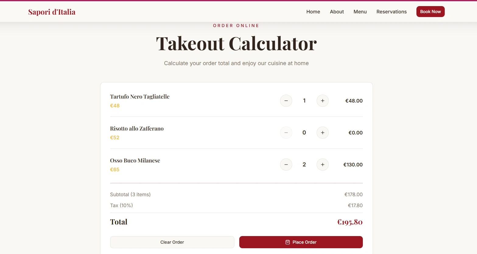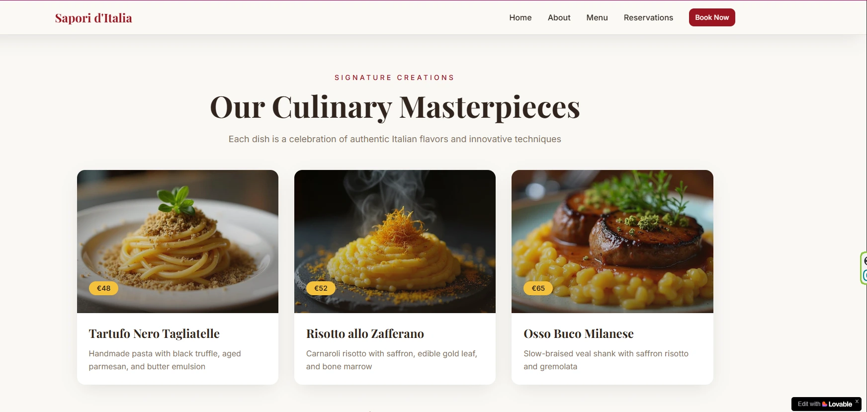 This website delivers a seamless user experience with a visually rich layout, intuitive navigation, and an atmosphere that mirrors the sophistication of Sapori d’Italia’s cuisine. From showcasing signature dishes to highlighting the expertise of award-winning chefs, every section was crafted to inspire visitors to explore, reserve, and engage.