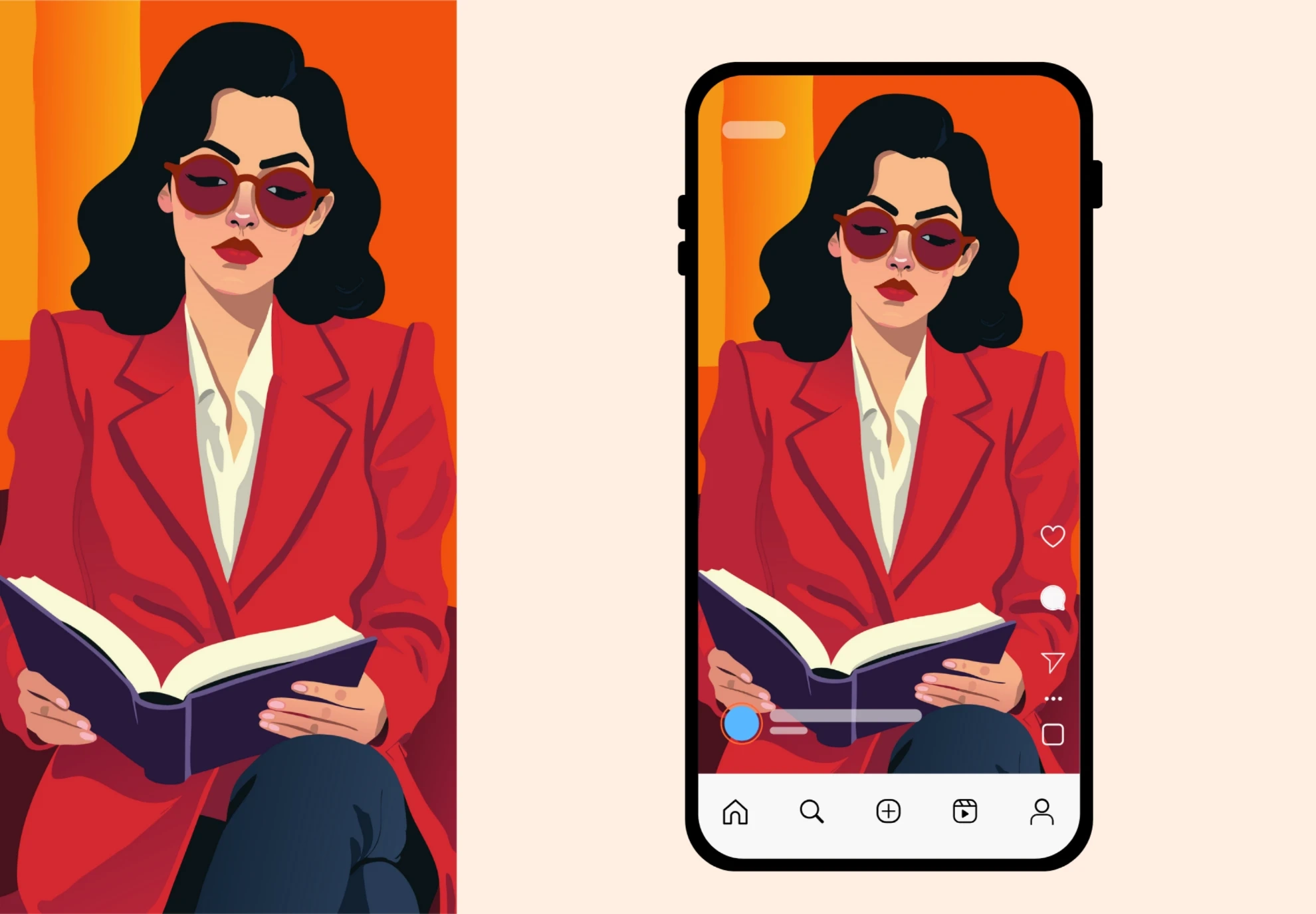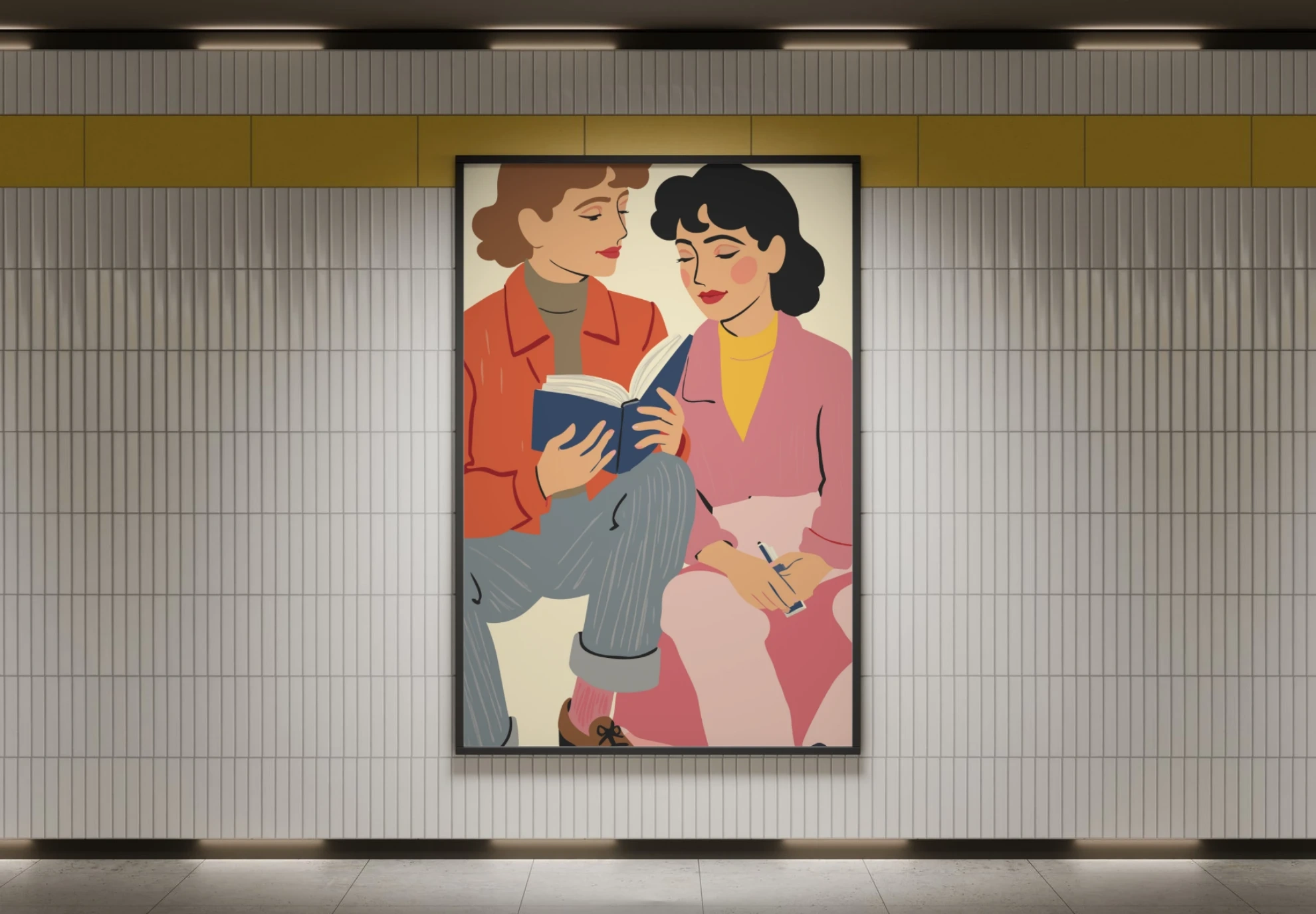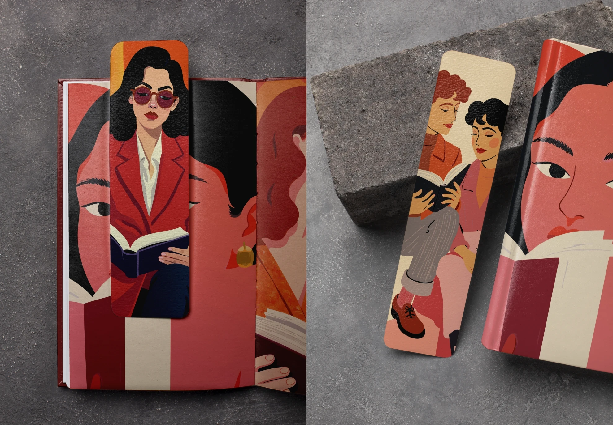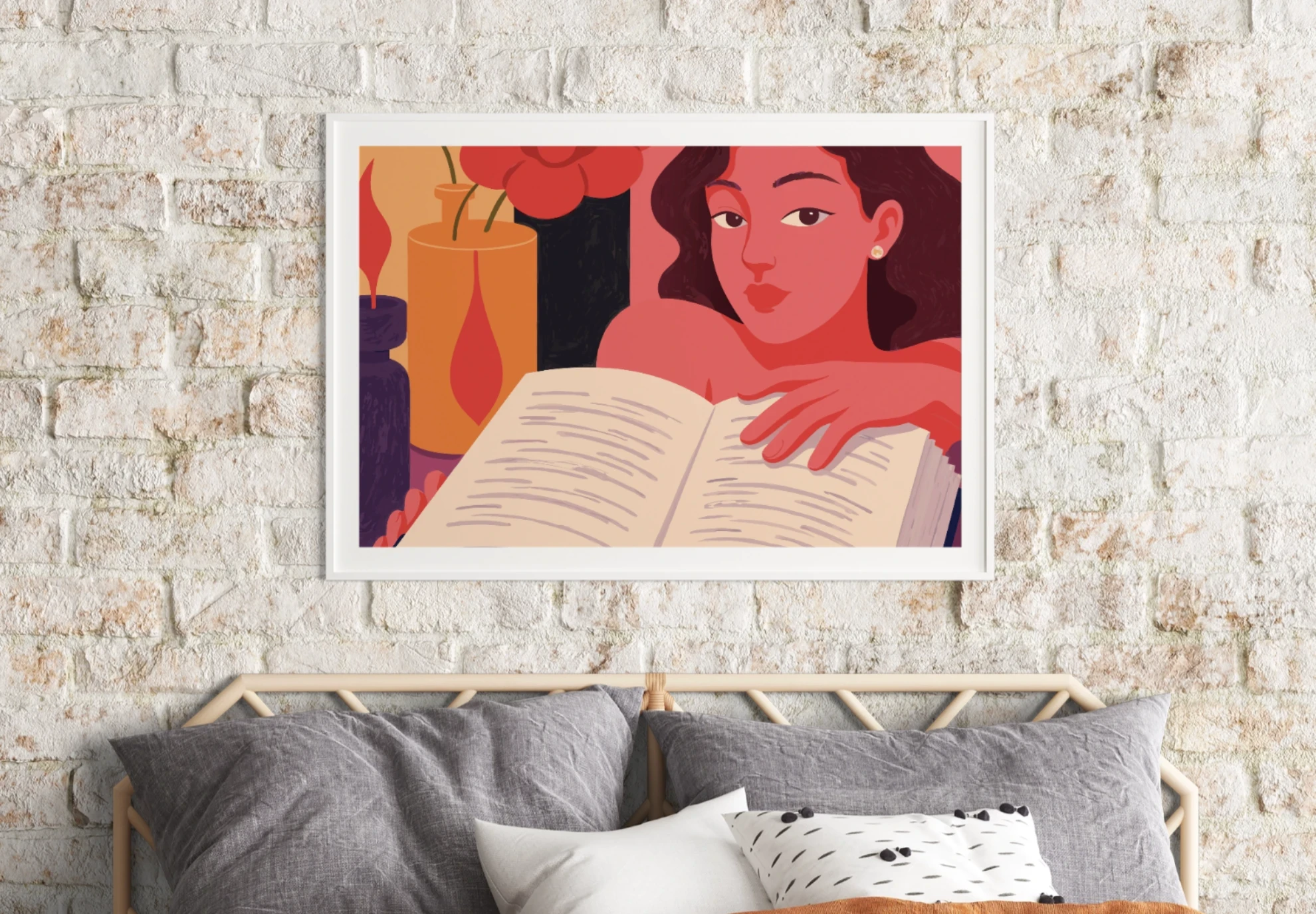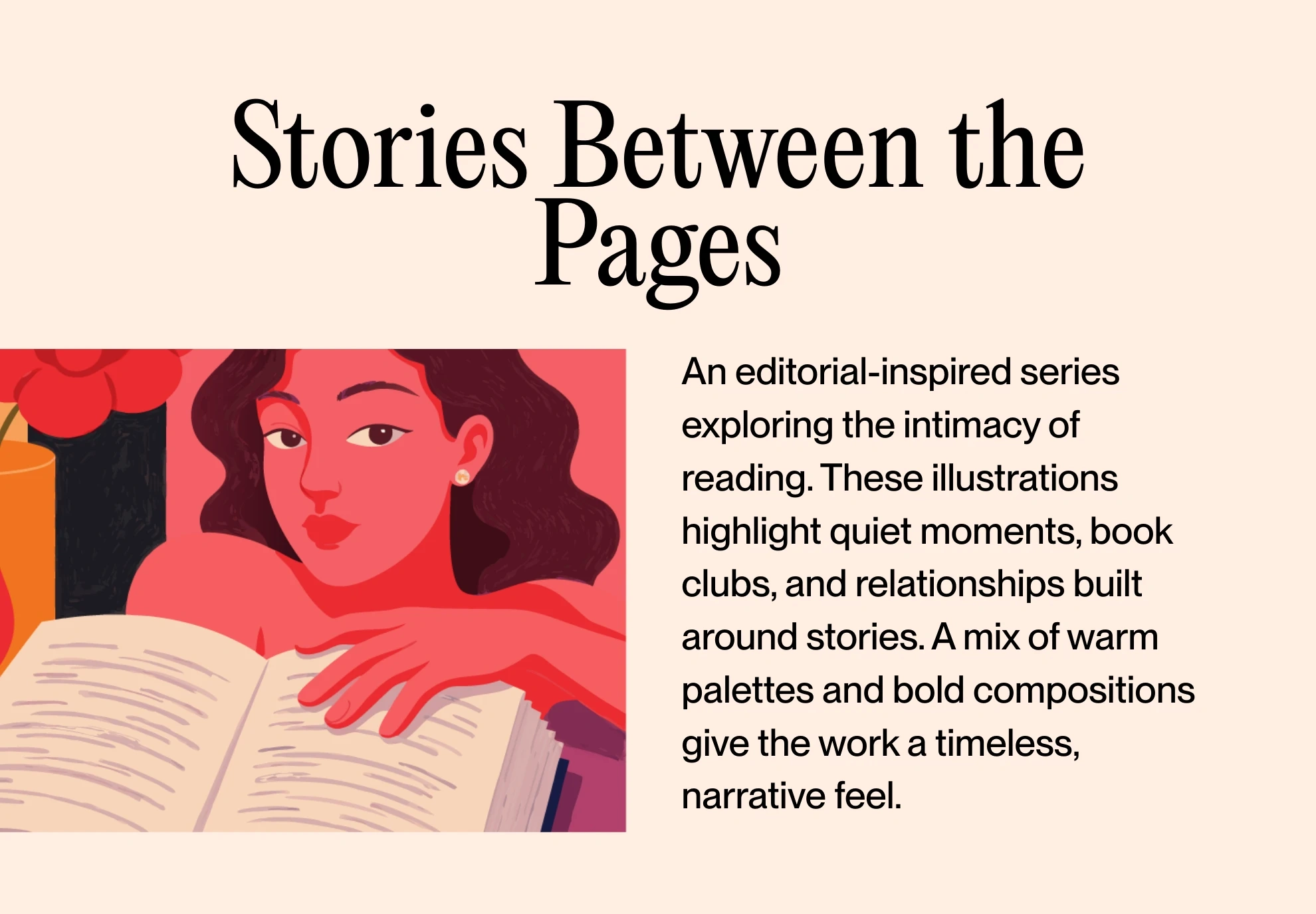 Editorial Illustrations – lifestyle and book-themed artwork capturing storytelling, reading, and intimate character moments in a bold, modern style.