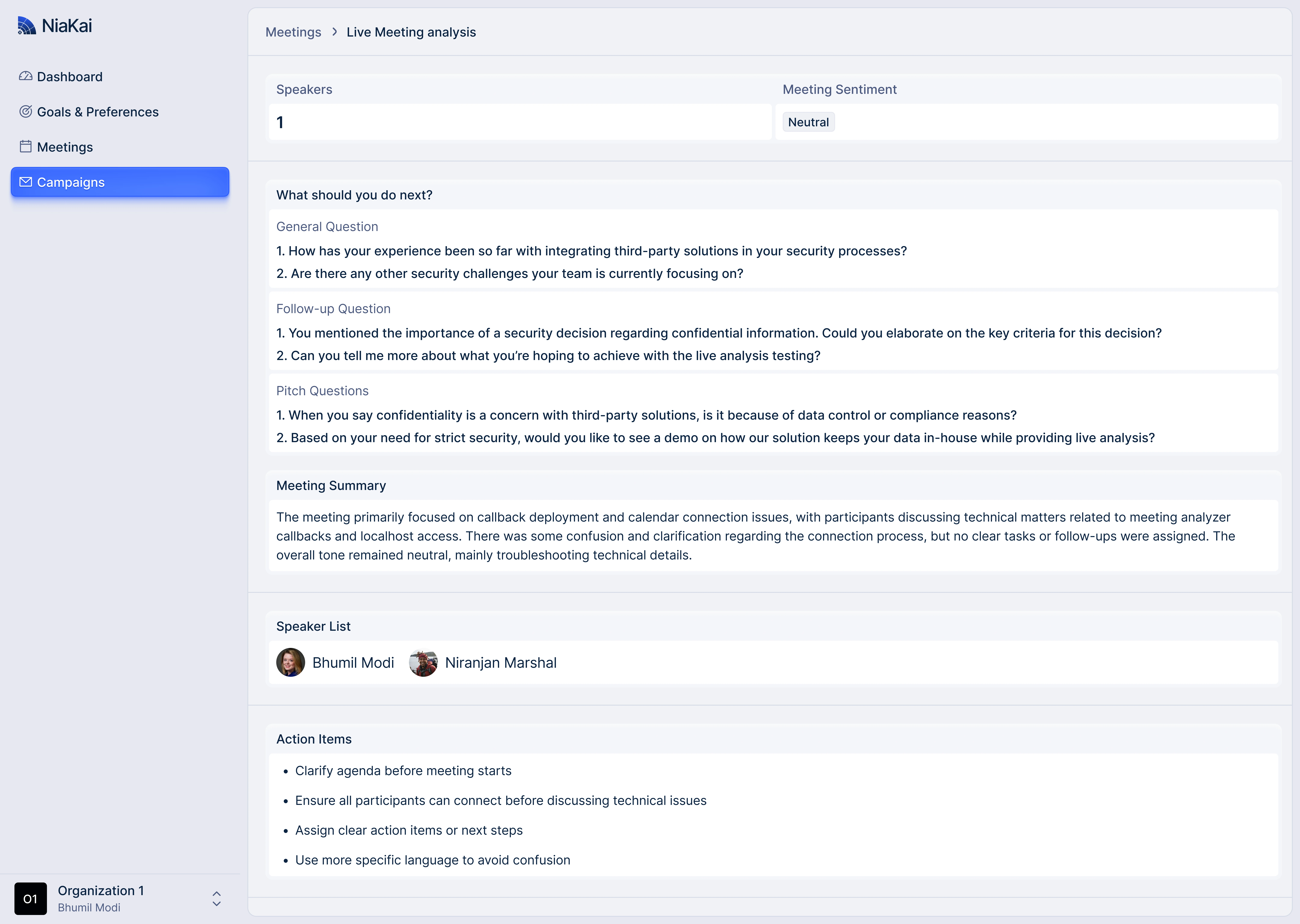 NiaKai is an AI-powered sales assistant that captures live conversations, extracts key insights, and automates follow-ups to help teams move faster and close deals more efficiently.