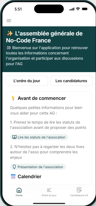 Creation of an application to manage the general meeting of an association and to add candidacies.