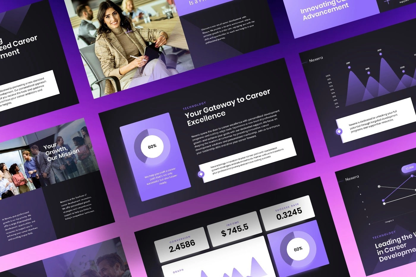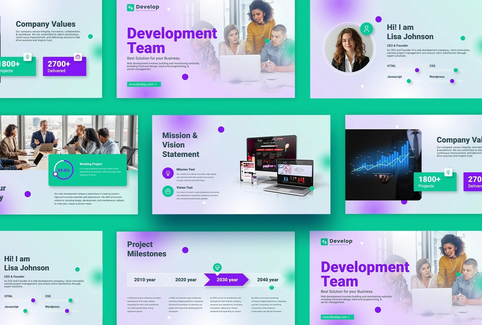 Designed a high-end, professional PowerPoint Business Profile template crafted for modern corporate storytelling and tech-centric branding. The design utilizes a sleek "Glass Morphism" aesthetic, combining soft vibrant gradients with a clean, modular layout to ensure a futuristic and credible look. Key features include custom-built slides for Project Milestones, Mission & Vision statements, and Team Profiles, all organized through a balanced information architecture that prioritizes readability. This versatile asset is fully optimized for high-stakes pitch decks, stakeholder presentations, and internal corporate branding, providing a unified and sophisticated visual identity.