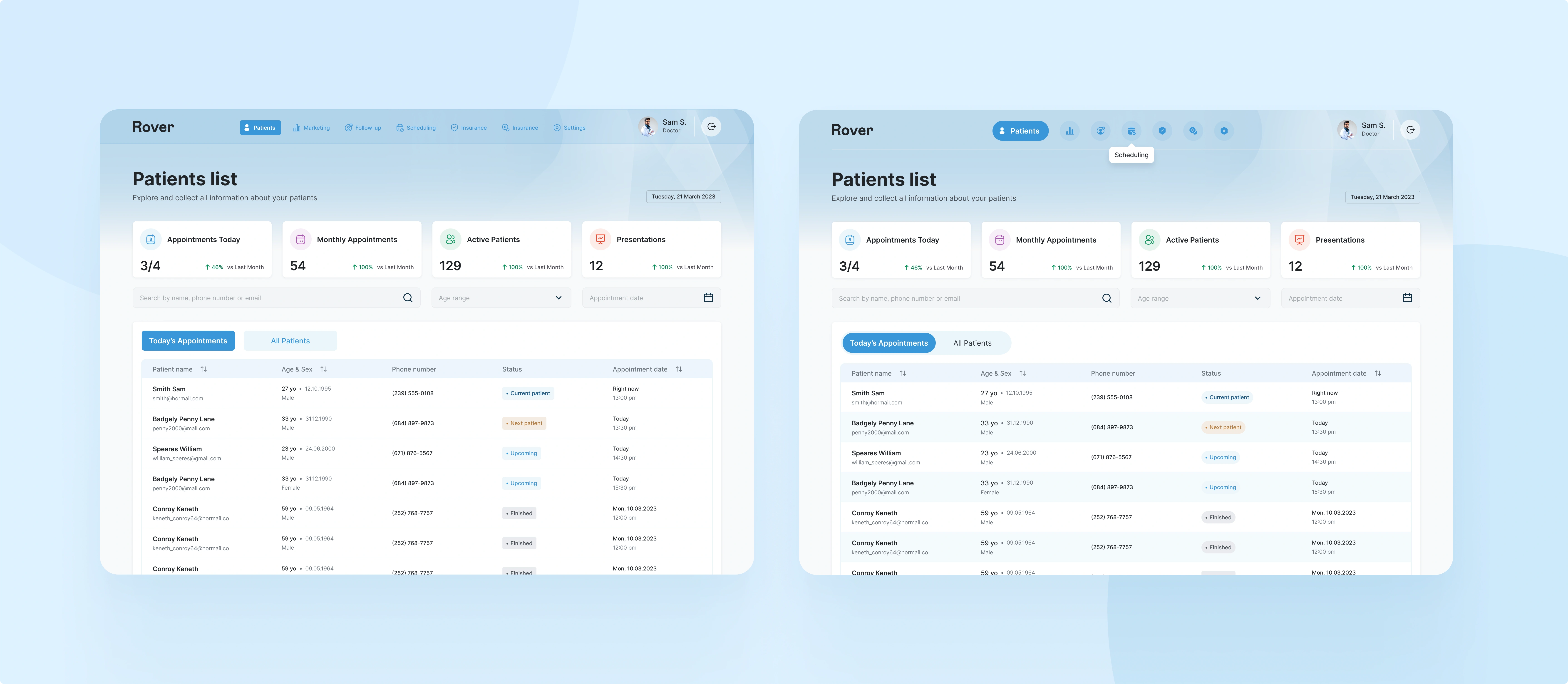 Welcome to ROVER, an innovative platform designed to bridge the gap between doctors and patients. With a clean and intuitive interface, this web app simplifies the process of booking appointments, accessing medical records, and connecting with healthcare professionals. Patients can explore doctor profiles, check availability, and schedule consultations seamlessly, while doctors can manage appointments and patient information efficiently. Built with user experience and functionality in mind, rover empowers users to take charge of their healthcare journey, fostering convenience, trust, and better outcomes.