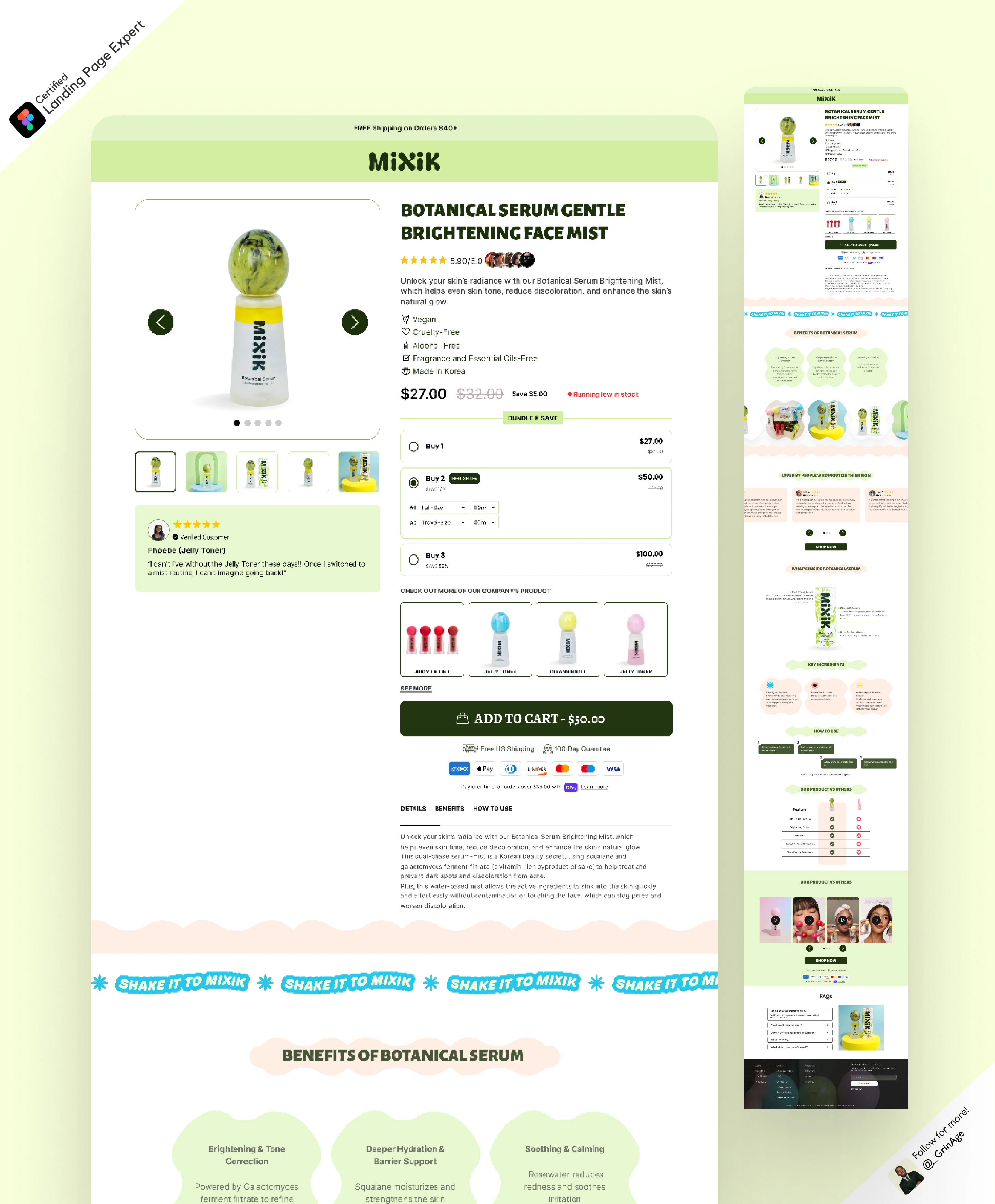 Landing Page, PDP Design for MIXIK Skincare Brand, CRO design focused. Designed to reduce the high bounce rate, and increase sales