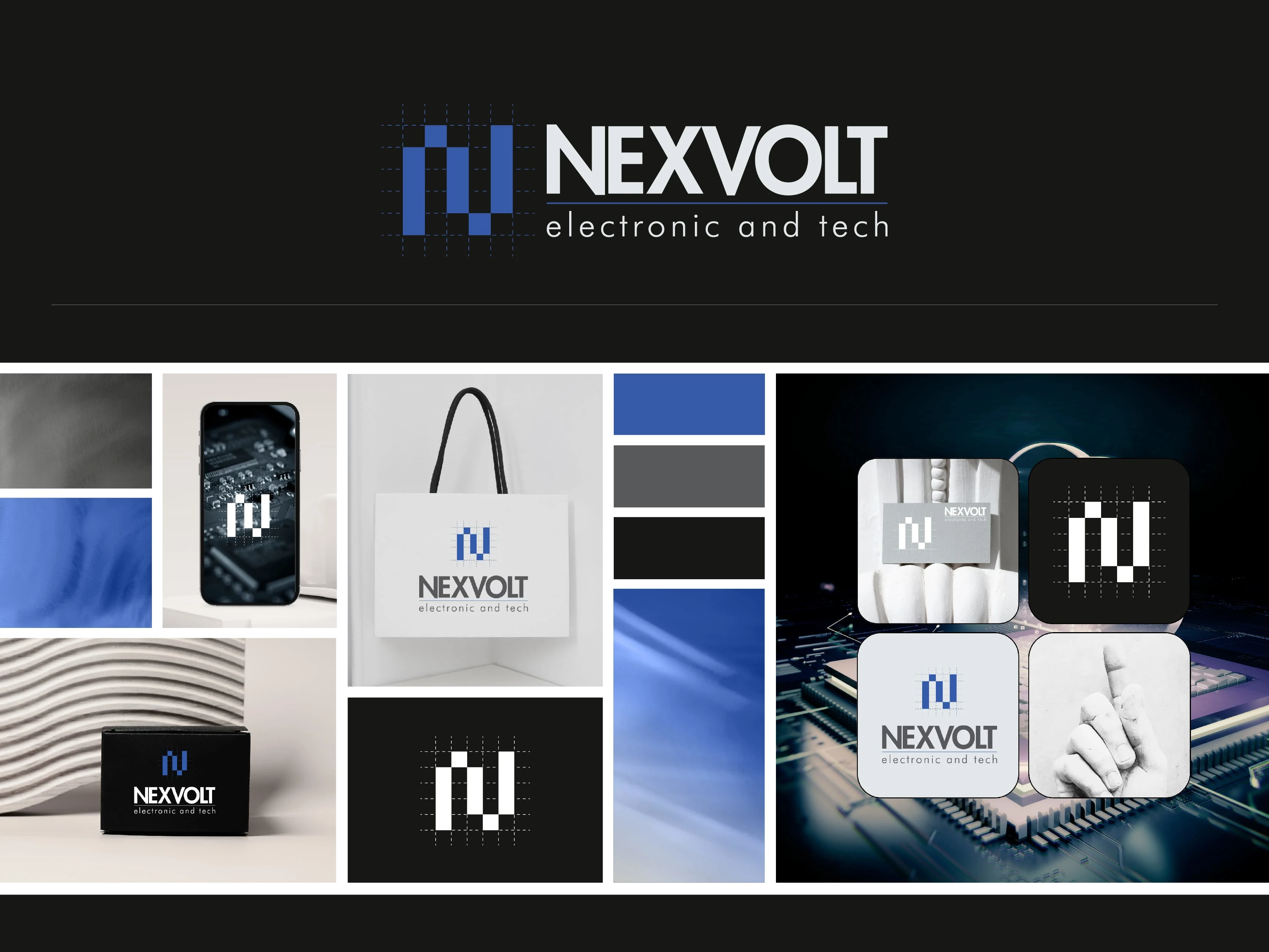 NexVolt “Powering the Future” brand moodboard featuring dynamic visuals, color schemes, and design elements that define a modern, forward‑thinking identity.