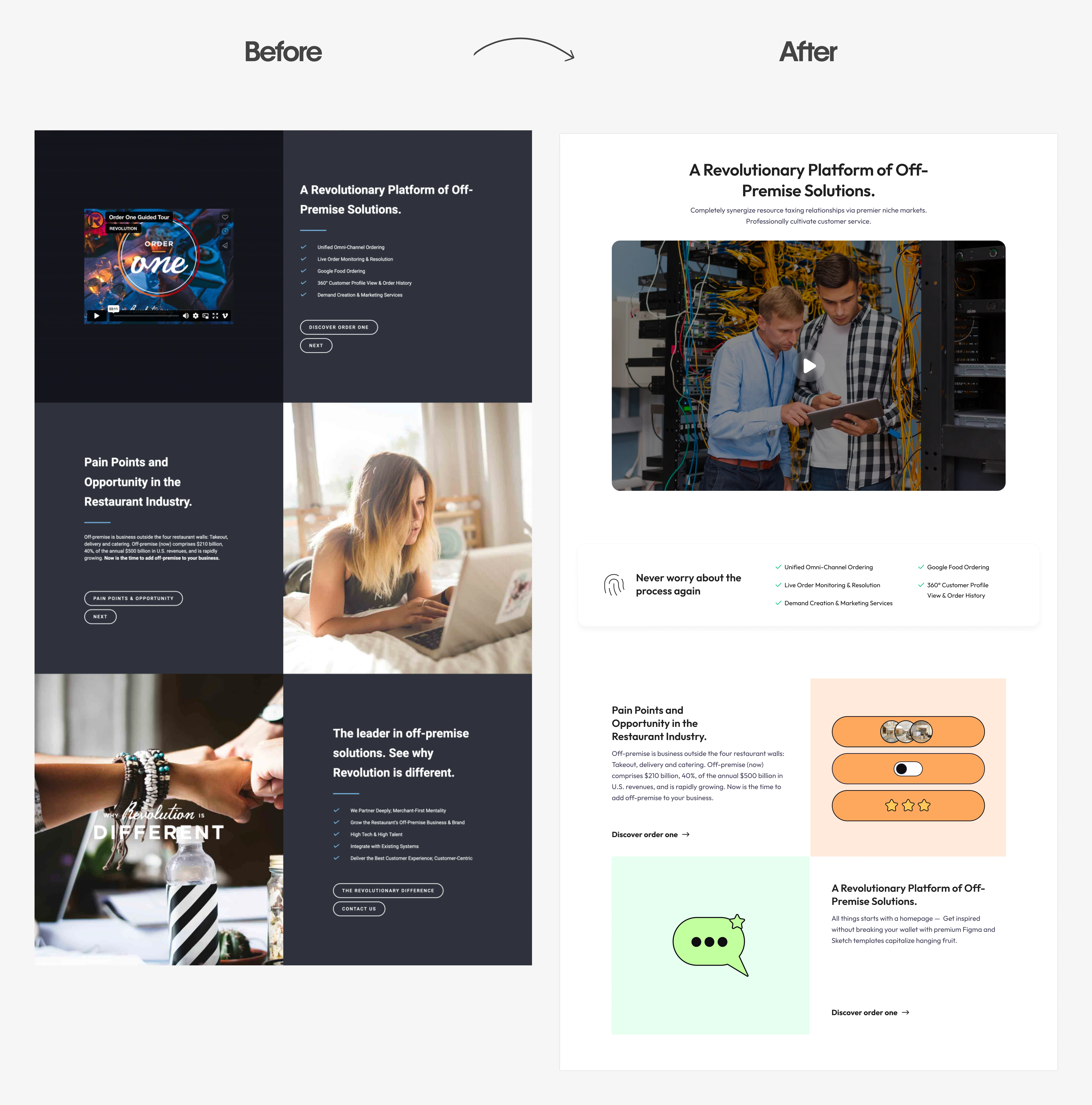 Redesigned and rebuilt Revolution Ordering’s website from scratch in Webflow—transforming a dense layout into a clean, modern, conversion-focused experience UI.