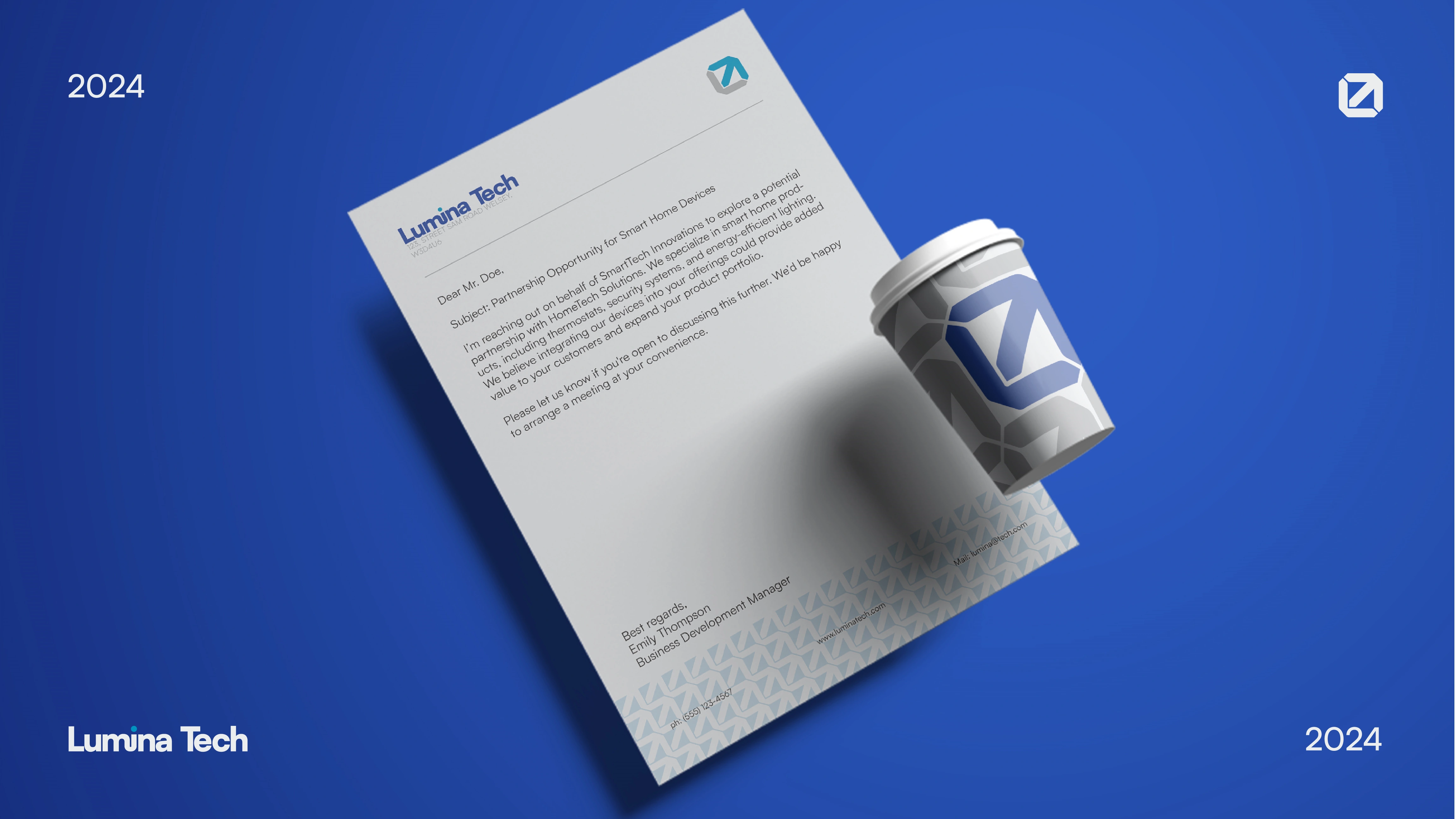 The final brand identity reflects LuminaTech’s values while positioning the company as an innovative, reliable, and approachable leader in the tech space. The visual system is adaptable, professional, and forward-thinking, ready to help LuminaTech make an impact across all its communications, both digital and physical.