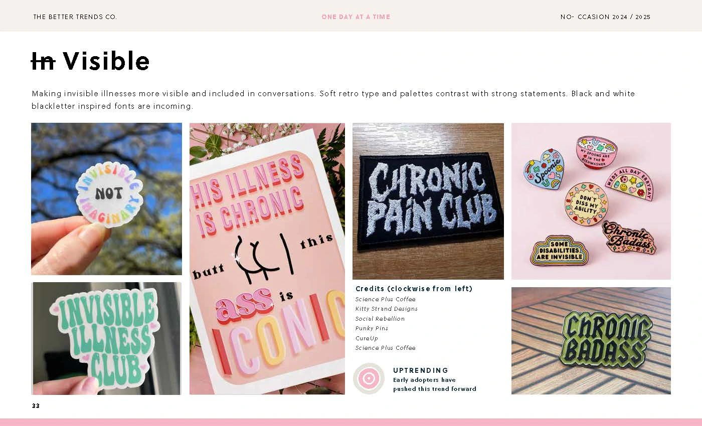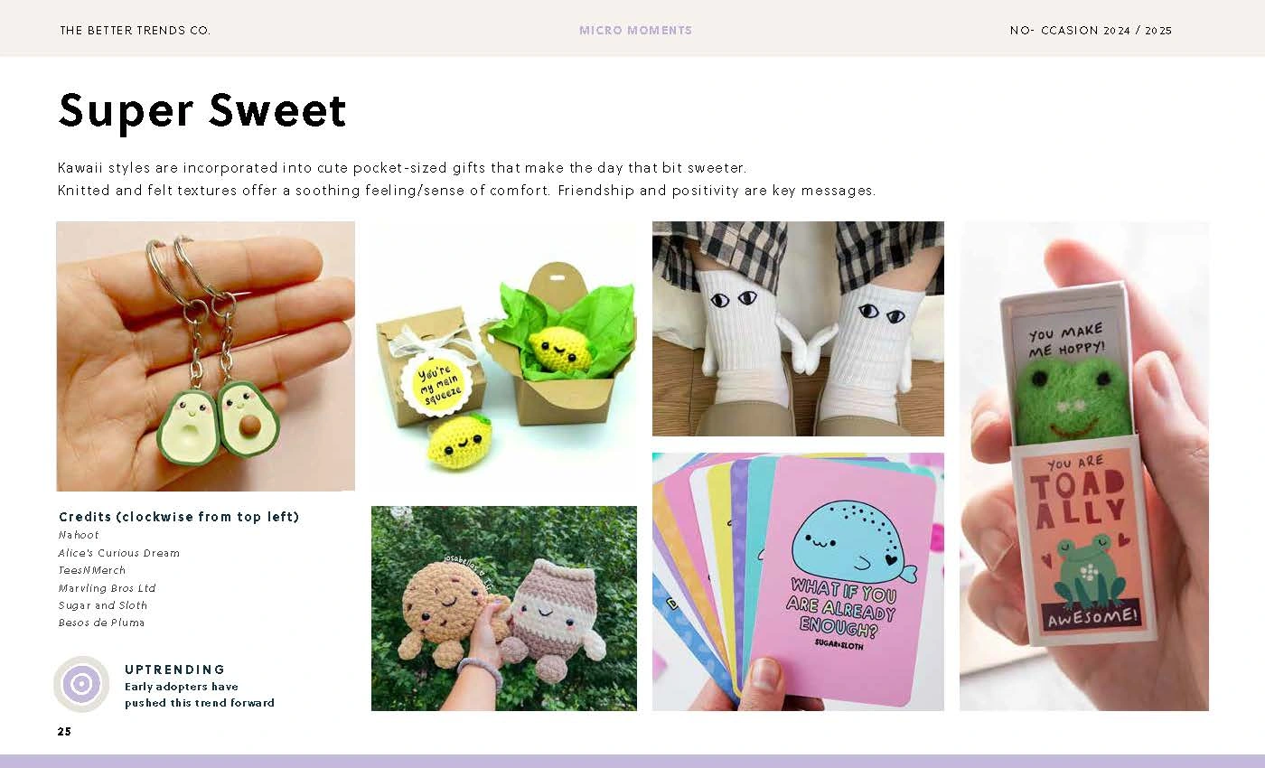 A trend report forecasting non-occasion gifts. It identifies the key trends and notes how developed each one is. (All rights The Better Trends Company)