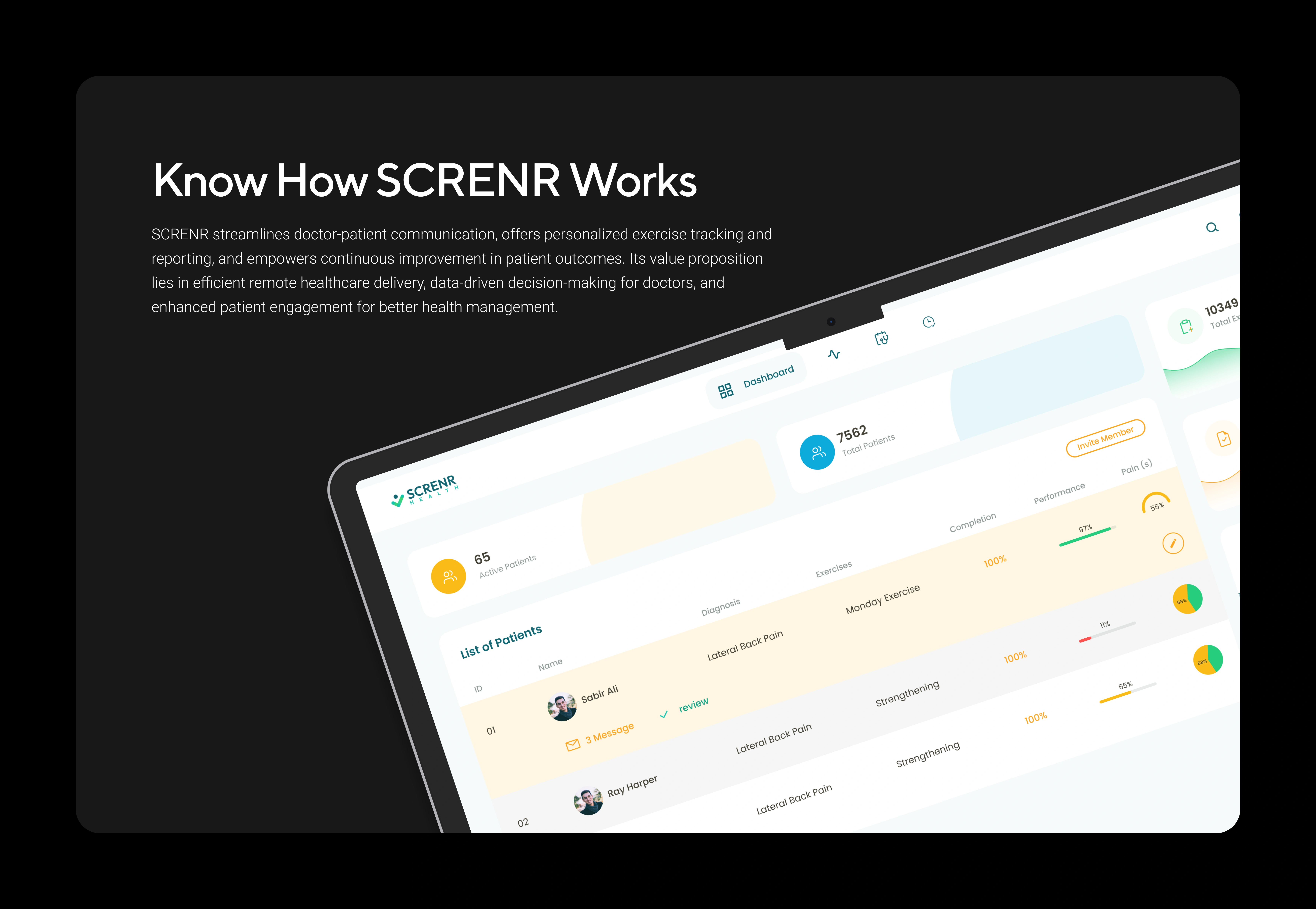 SCRENR is a healthcare platform that improves doctor-patient communication, enables personalized care, and boosts outcomes through smart, user-focused design.