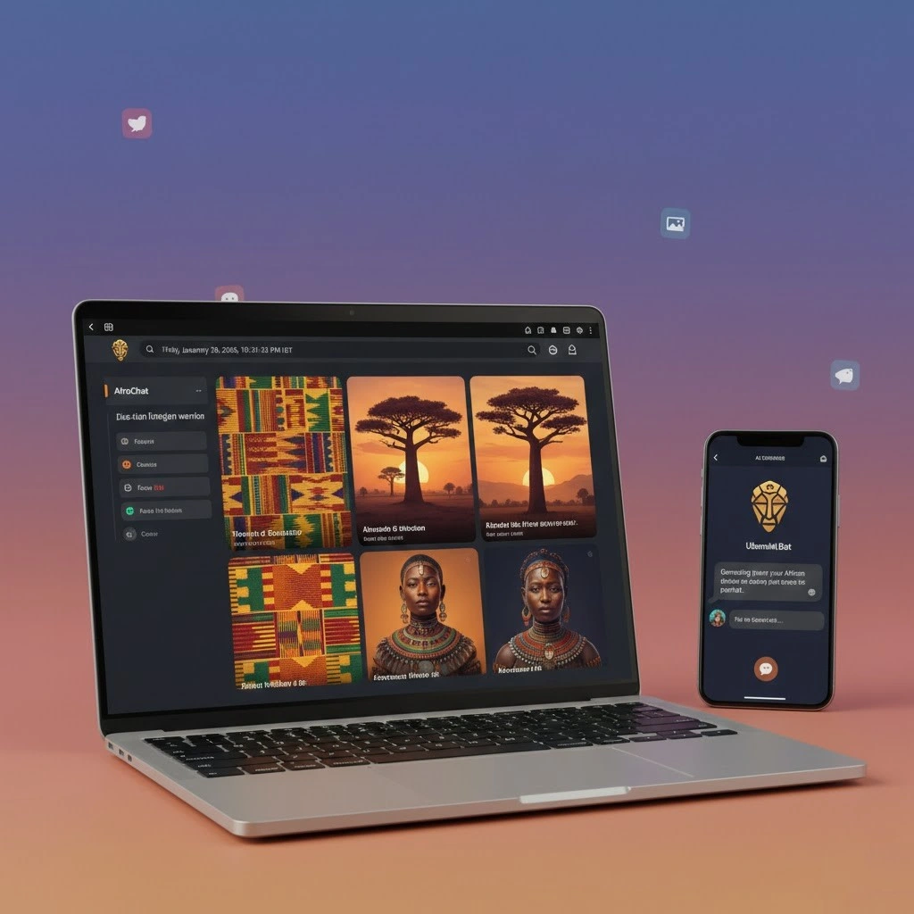Built AfroChat, a complete generative AI platform specifically designed for African users. The platform offers Text-to-Image generation allowing users to create visual content, interactive AI personas for conversations and assistance, and seamless Telegram integration so users can access AI features without installing full apps—critical for areas with limited storage or bandwidth.