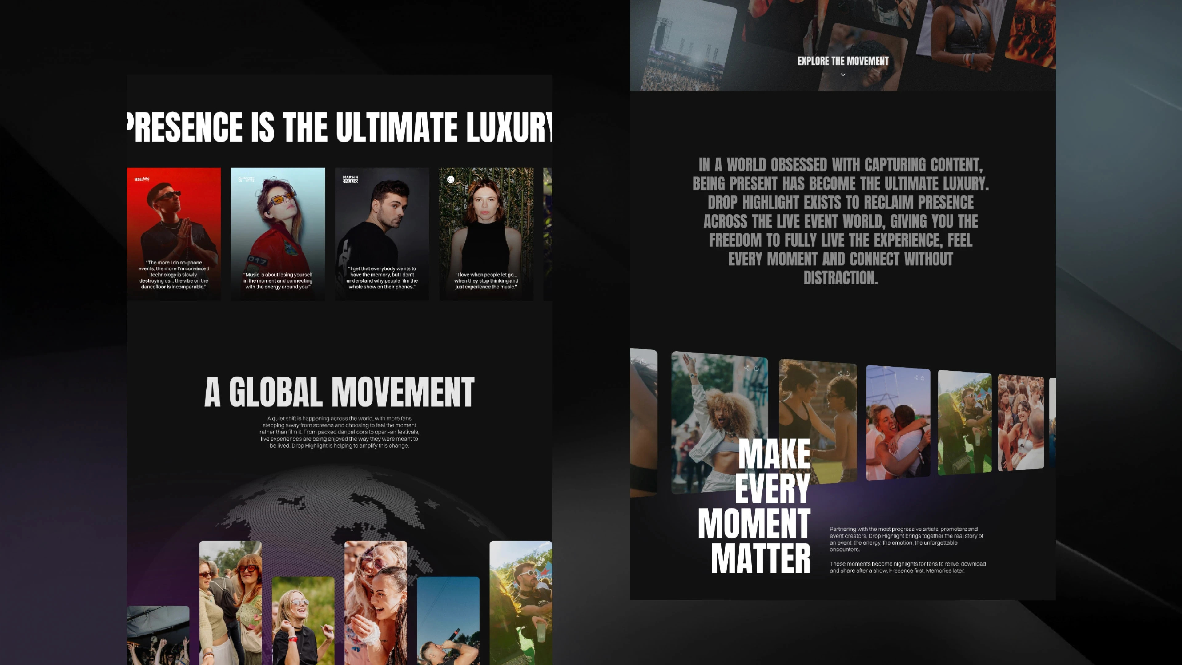 Created an immersive website for Drop Highlight embodying the 'Own The Moment' philosophy with as result, a high-end interactive website.
