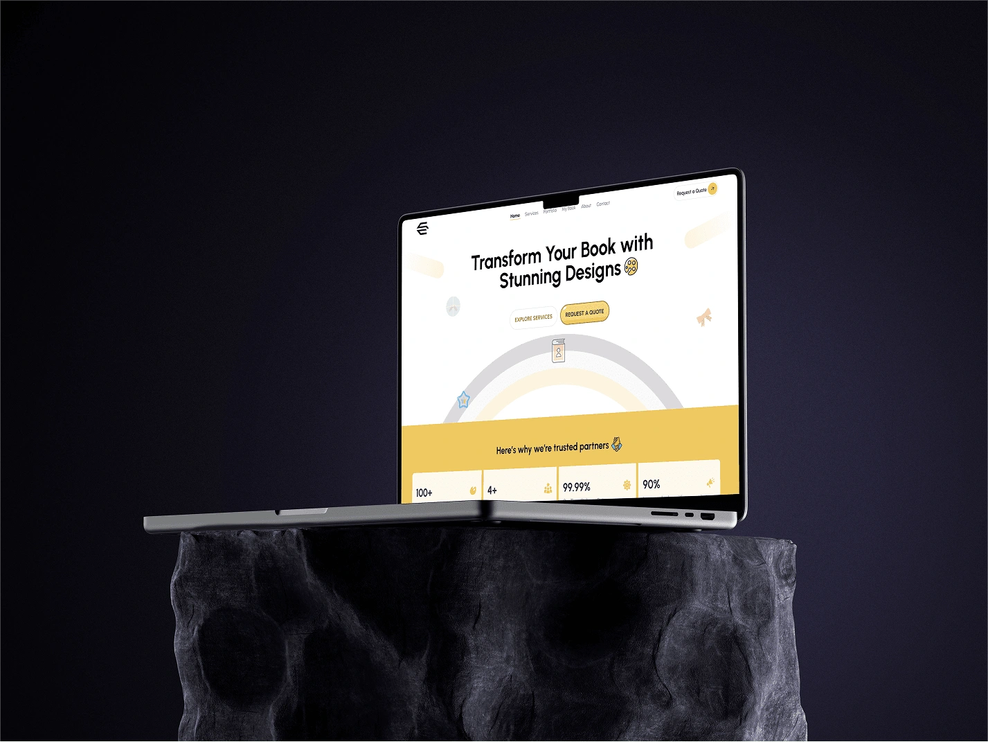 Portfolio design for a creative book cover designer who also offers complementary services such as book marketing and digital publishing.