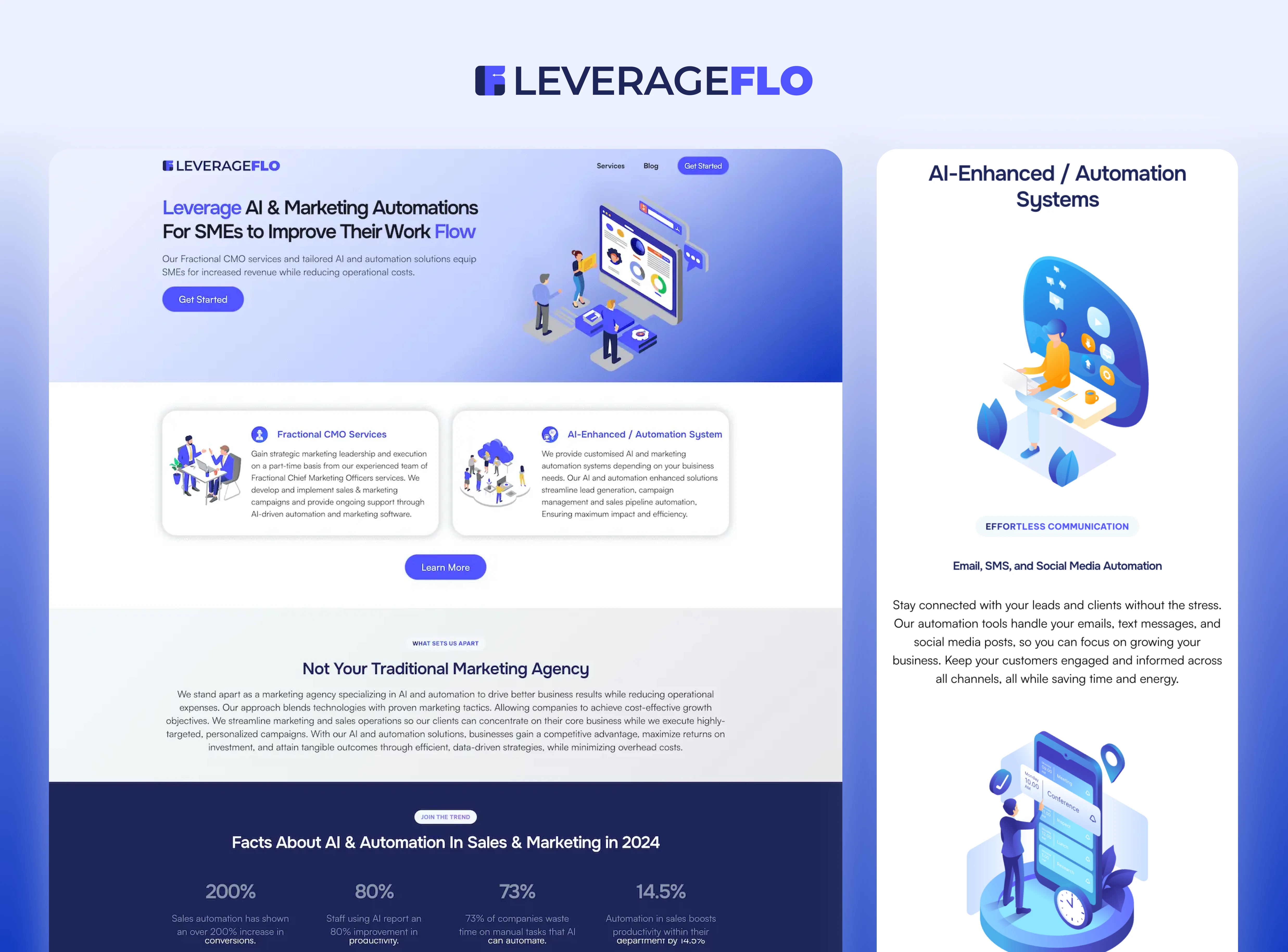 LeverageFlo is a marketing agency designed to streamline business operations through the power of marketing automation and AI.