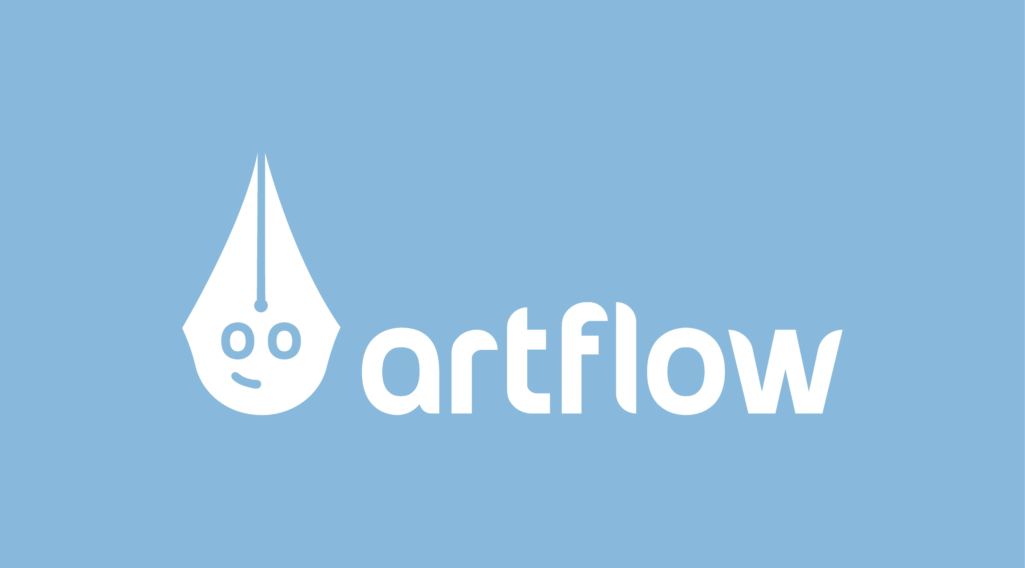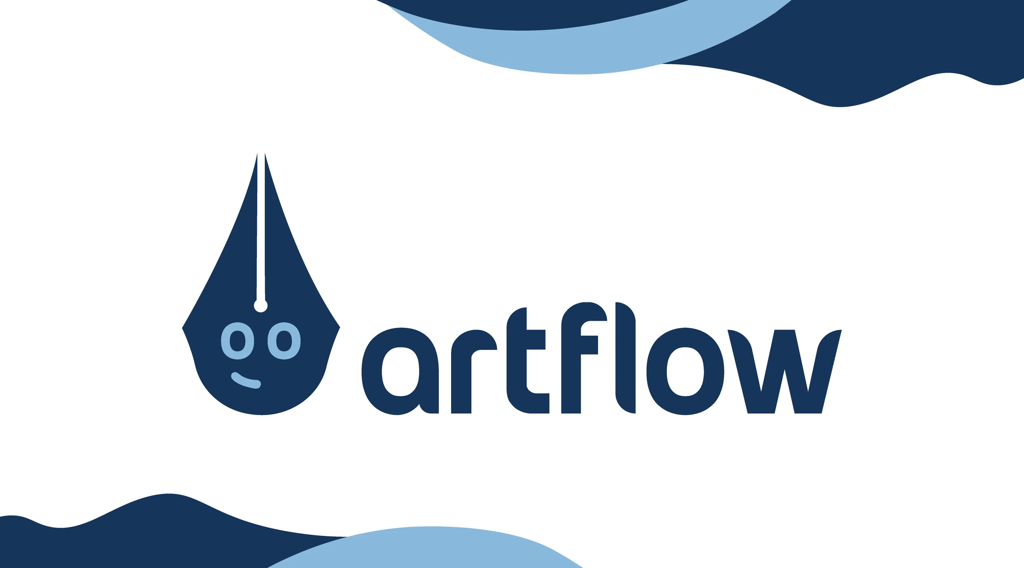 Artflow is a dynamic company that connects artists and designers. The logo features a joyful fountain pen head, representing storytelling and artistic flow.