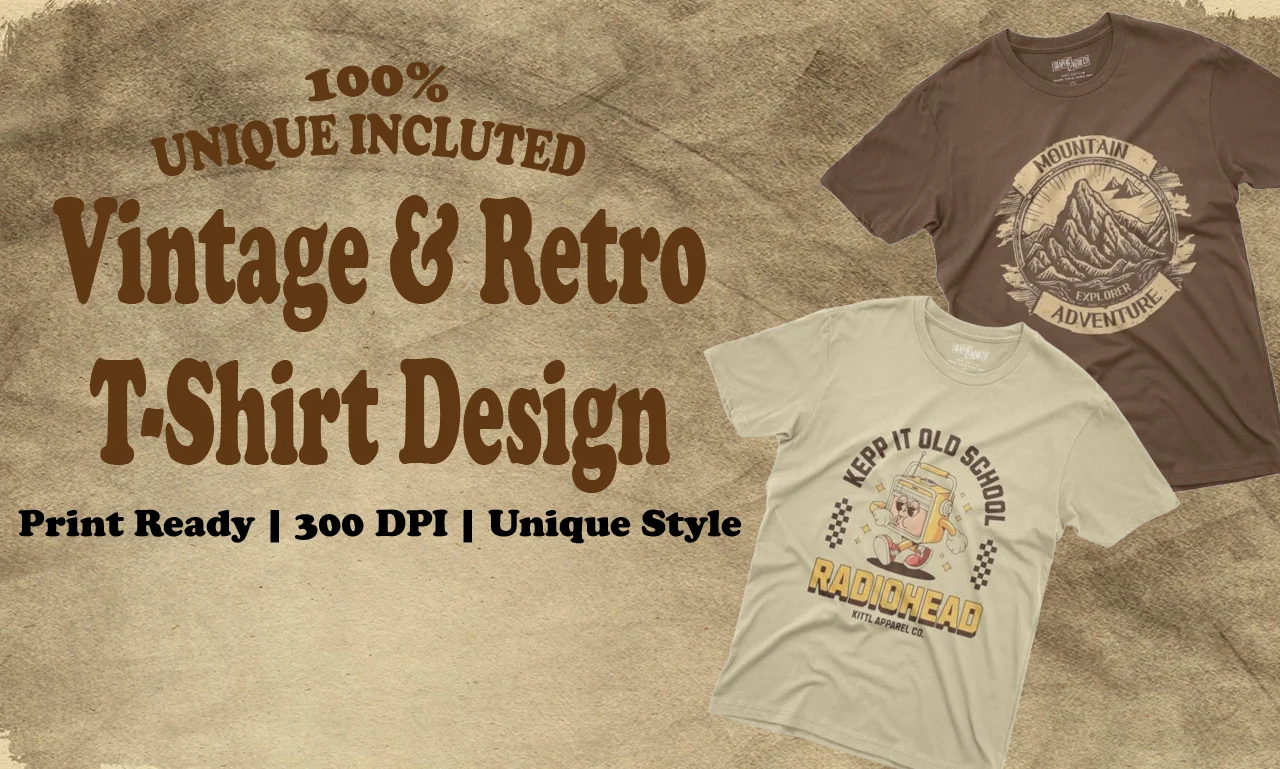 “Unique retro & vintage t-shirt designs with classic typography, distressed textures & print-ready files perfect for brands & POD stores.”