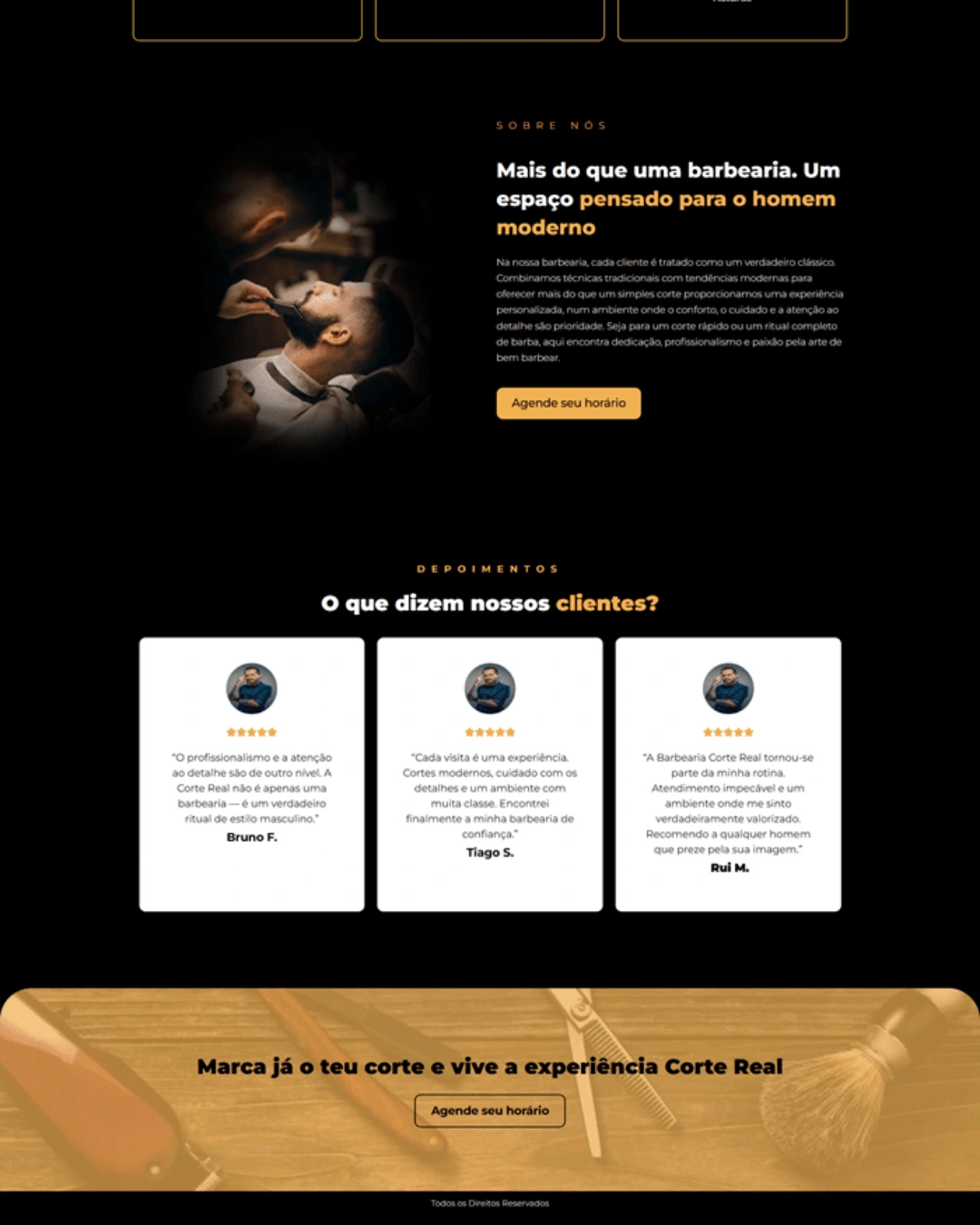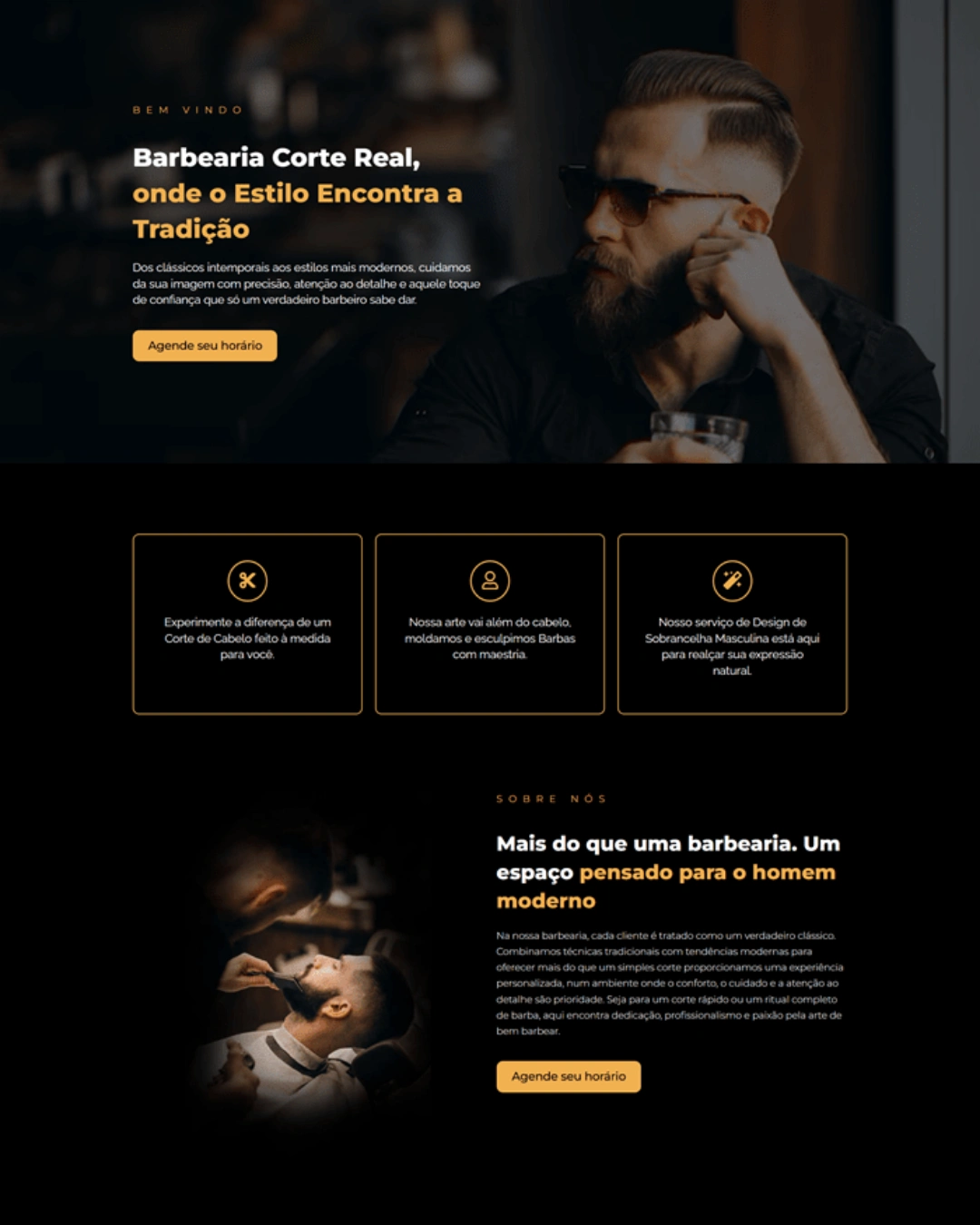 Modern barbershop landing page designed to attract clients, showcase style, and drive bookings — turning visits into more customers in the chair.