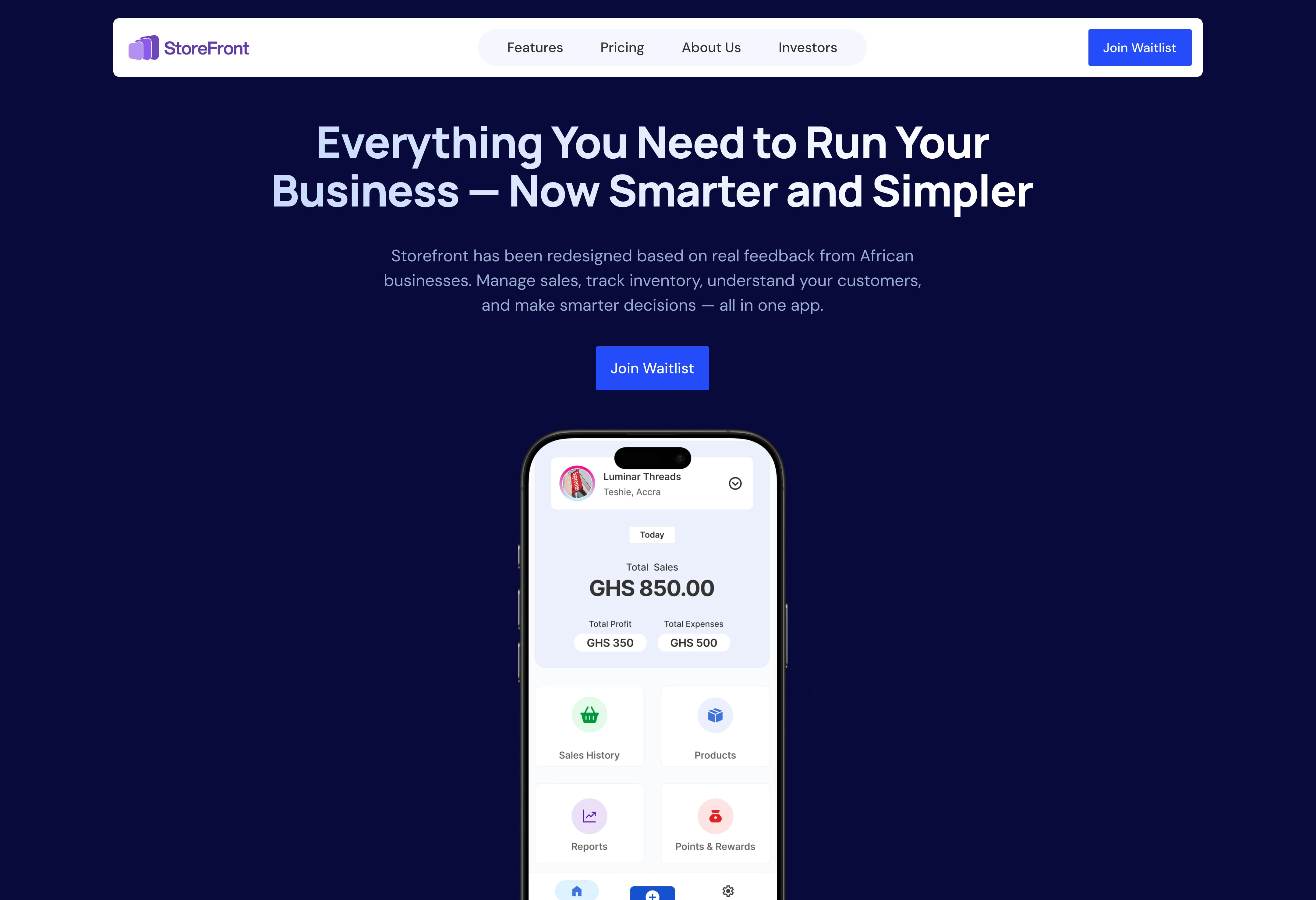 VerifiBuy Storefront is a digital platform with mobile and web apps that empower small and medium businesses in Ghana to manage sales, inventory, and operations efficiently.