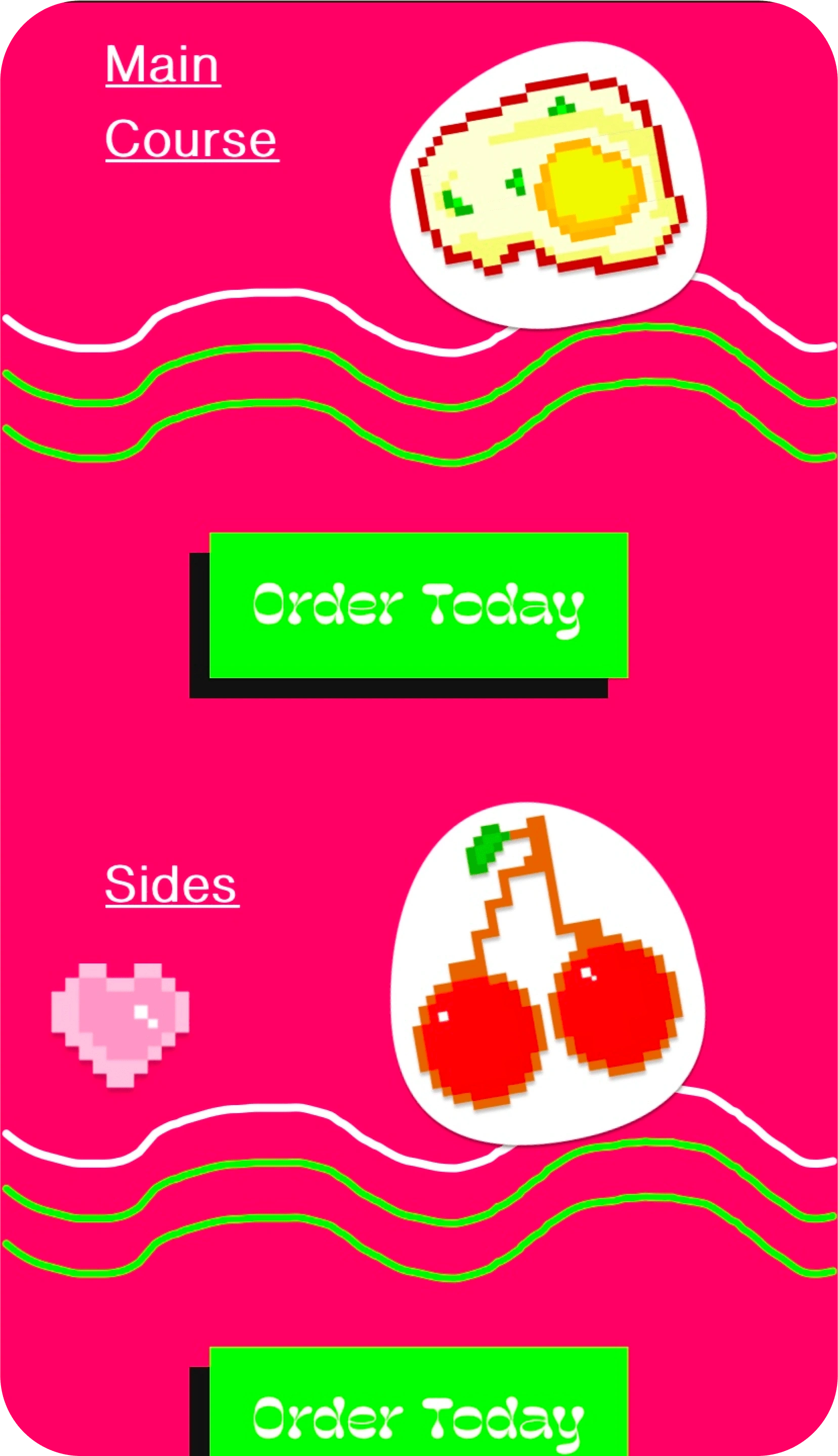 For the menu i designed custom pixel icons to match my previous idea to create a fully pixel website but along the lines i had to go for a partial pixelated site to incorporated other themes. Remember the theme is now Neobrutalism