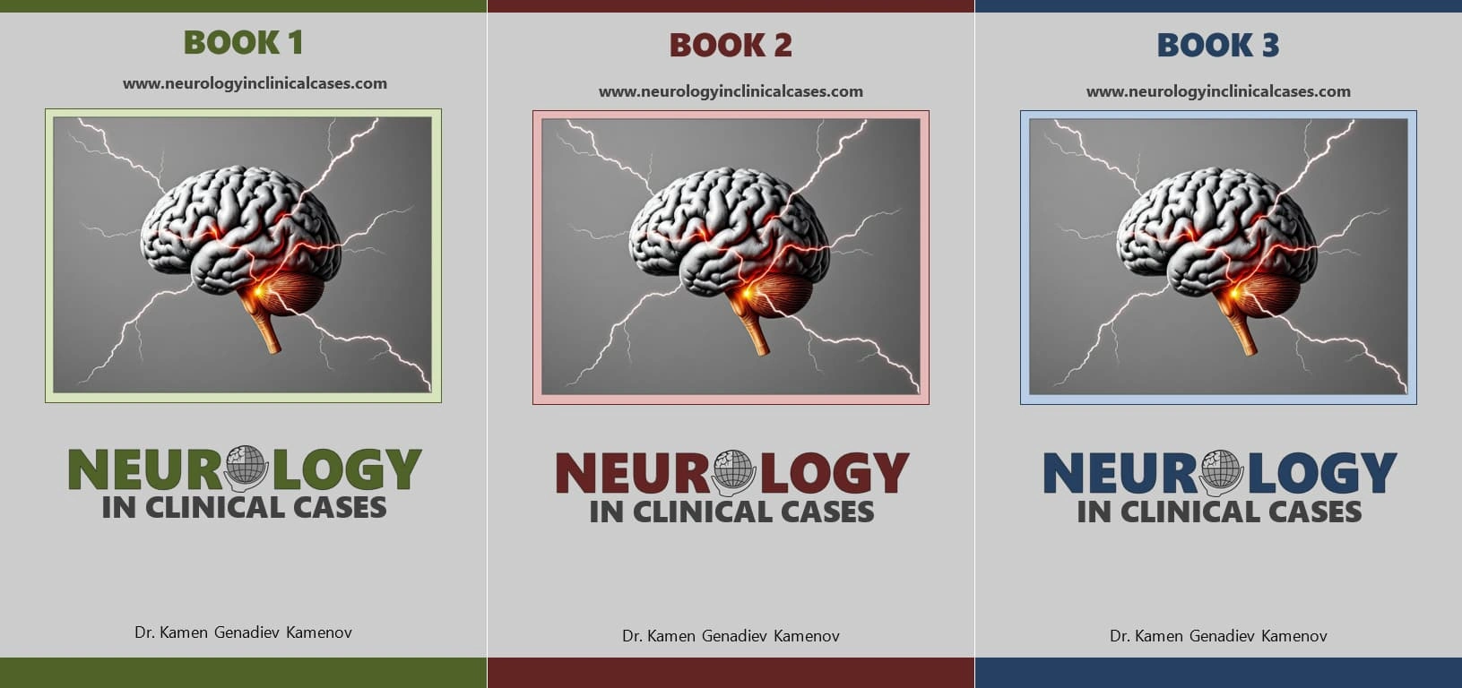 Trilogy book covers and content layout. Web-shop at www.neurologyinclincalcases.com
