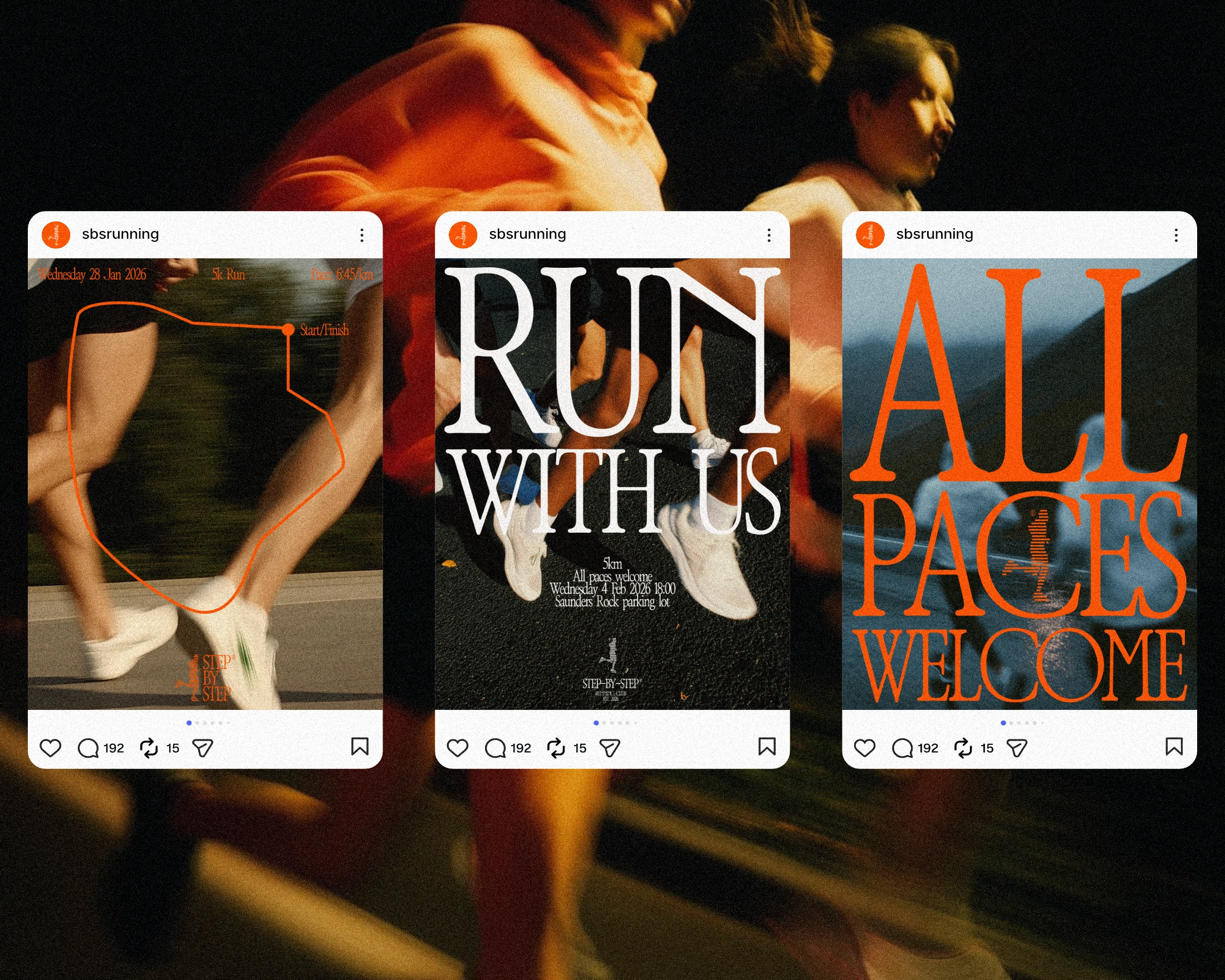 Step-by-Step is a community-driven running club built on the idea that progress happens gradually—through pace, rhythm, and consistency. The brand focuses on supporting runners of all levels, encouraging members to grow together and celebrate small wins along the way.
