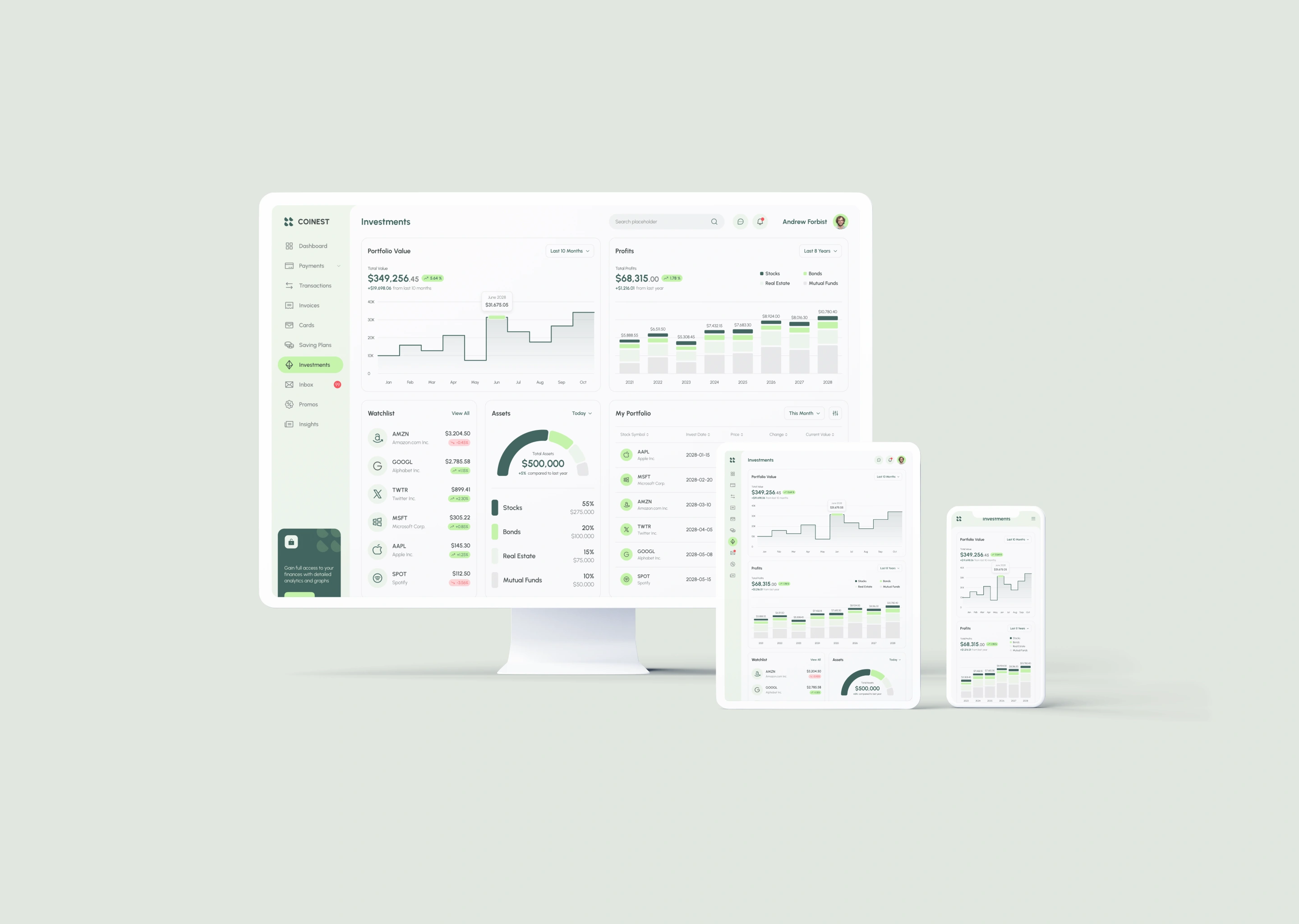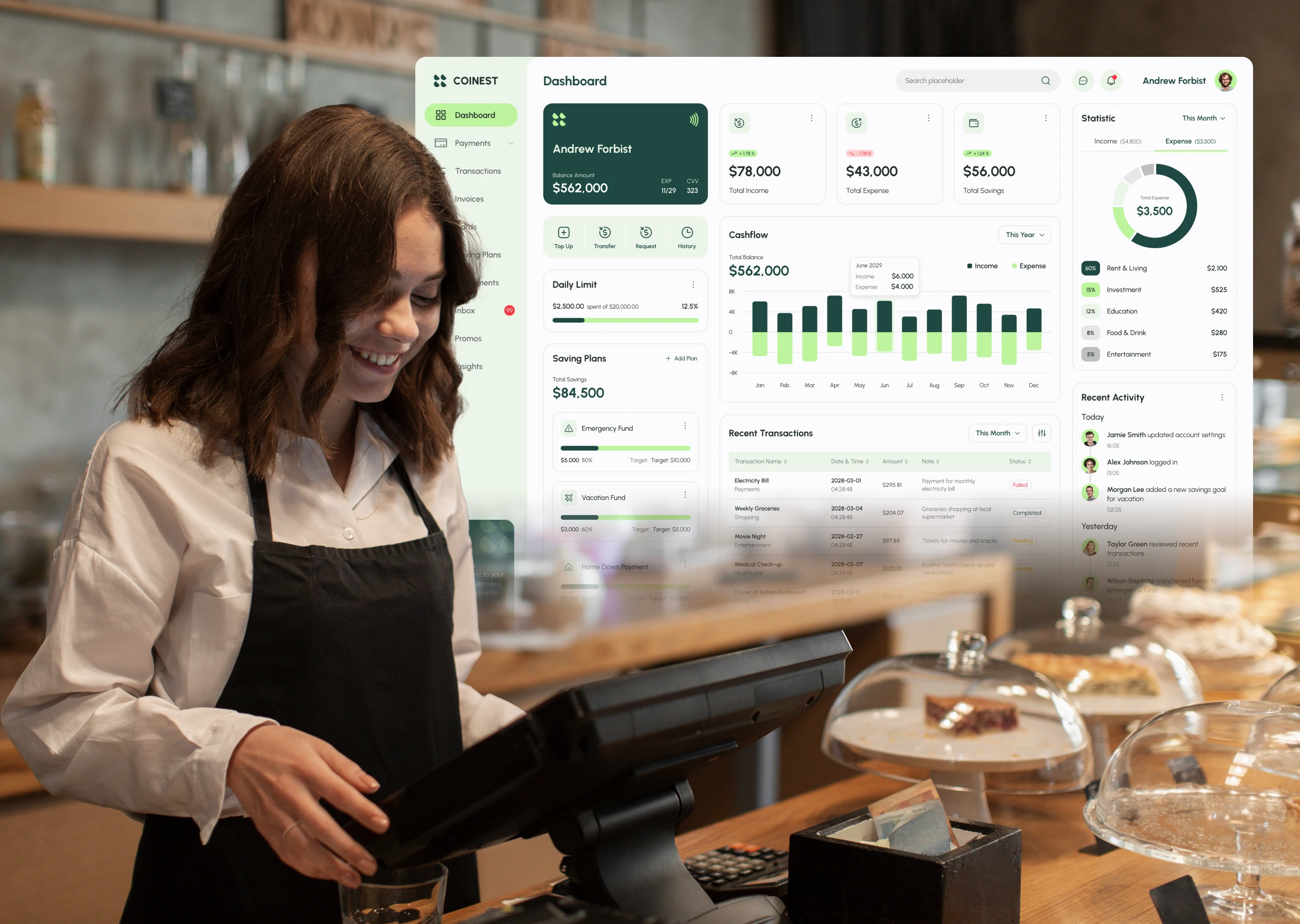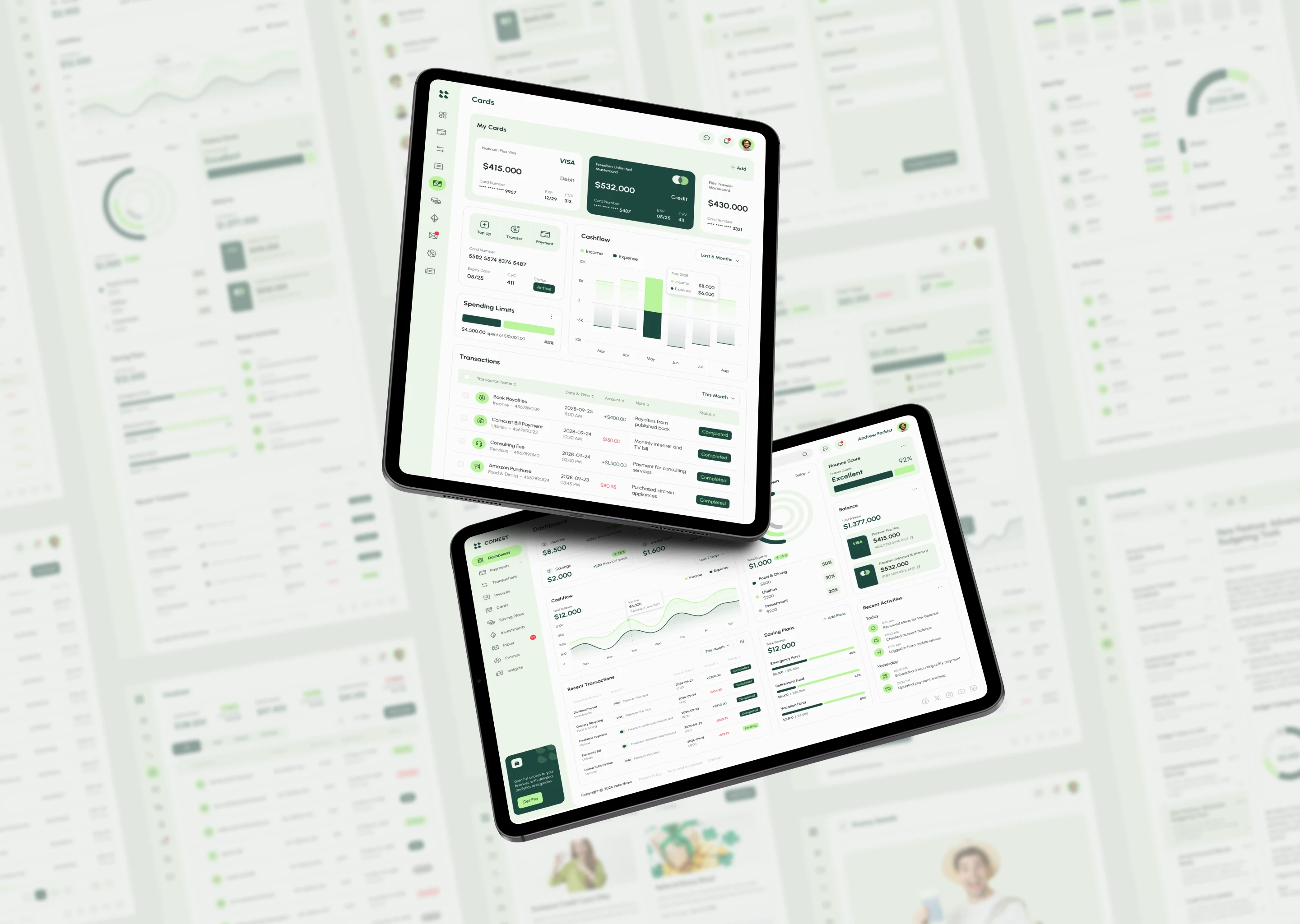 Discover effortless financial control with Coinest, a finance management dashboard Figma template, crafted to simplify your financial journey. It features two clean and customizable dashboard views that offer an inviting layout with easy-to-read sections, making it effortless to track income, expenses, savings, and investments at a glance.