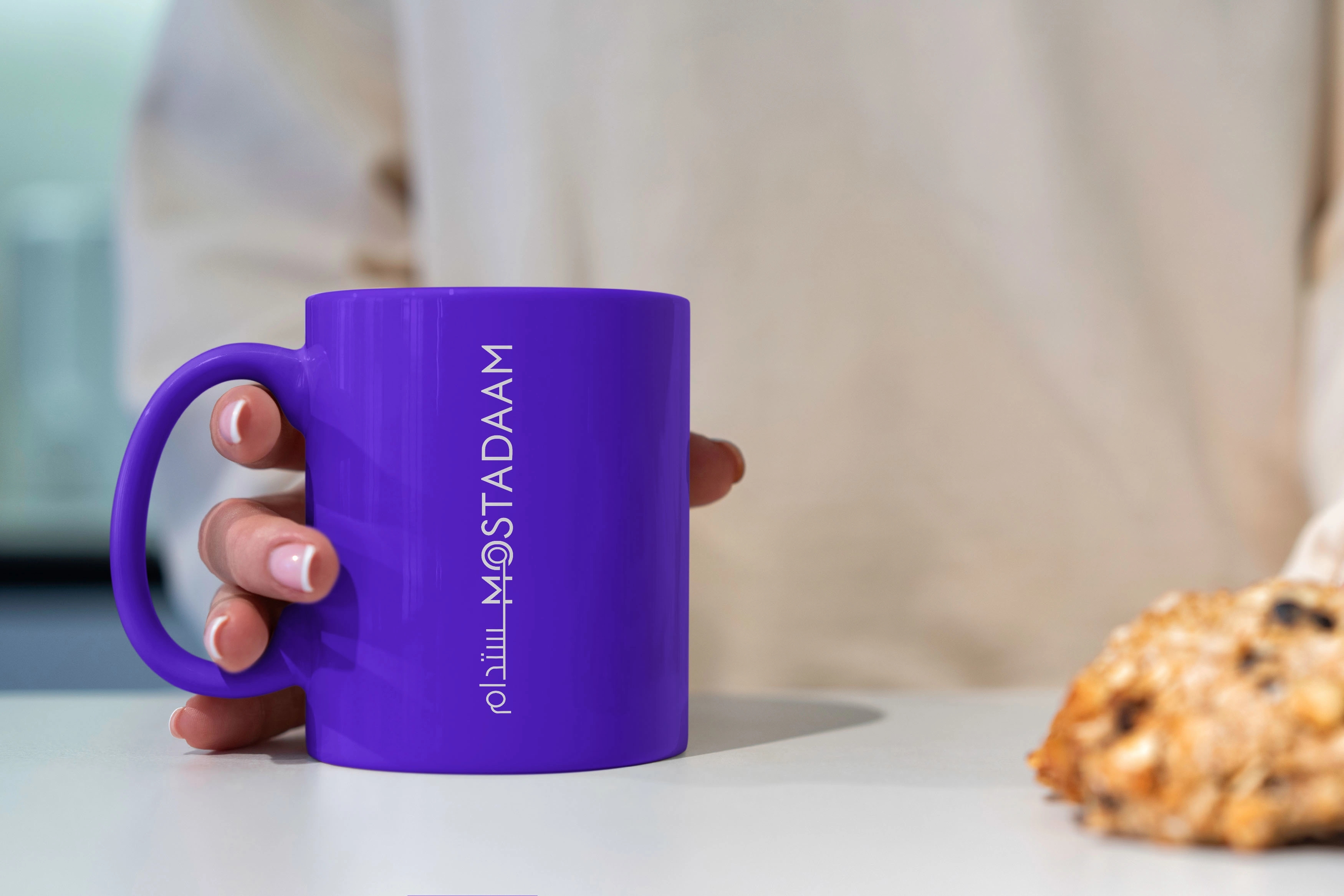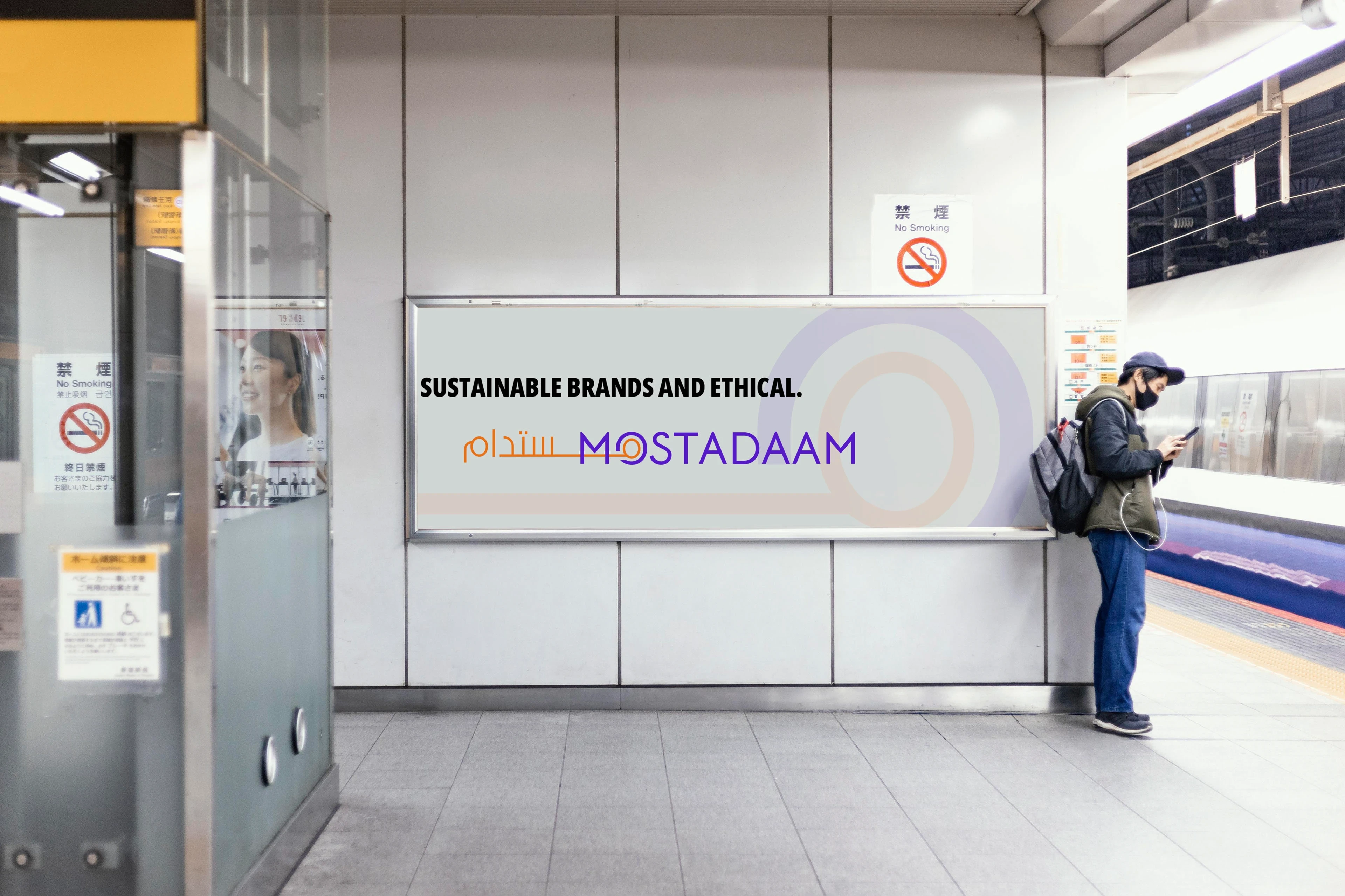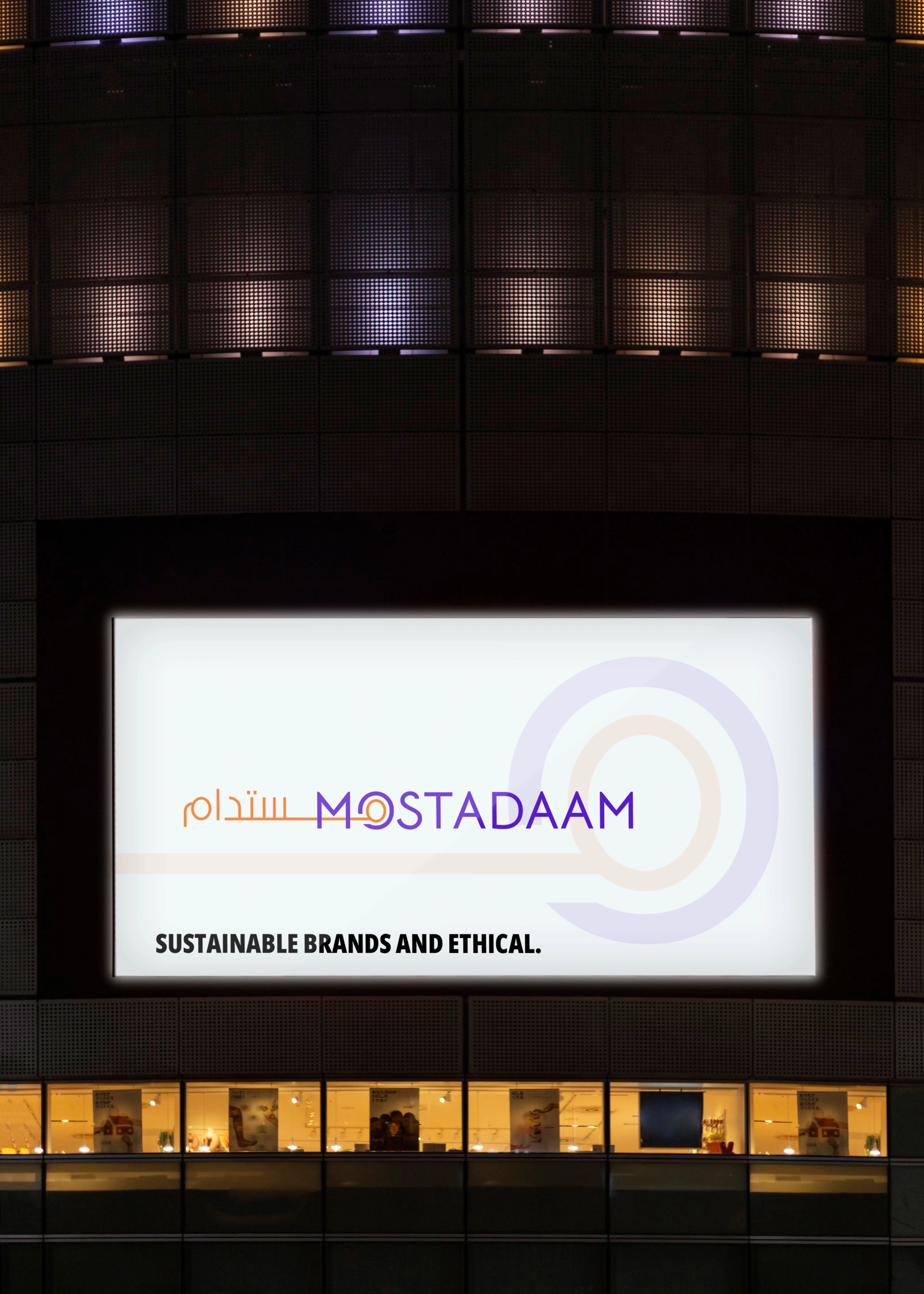 The Arabic version beautifully integrates the brand name with a stylized "M." This "M" cleverly incorporates two circles, symbolizing wholeness and the all-encompassing nature of the Mostadaam marketplace.