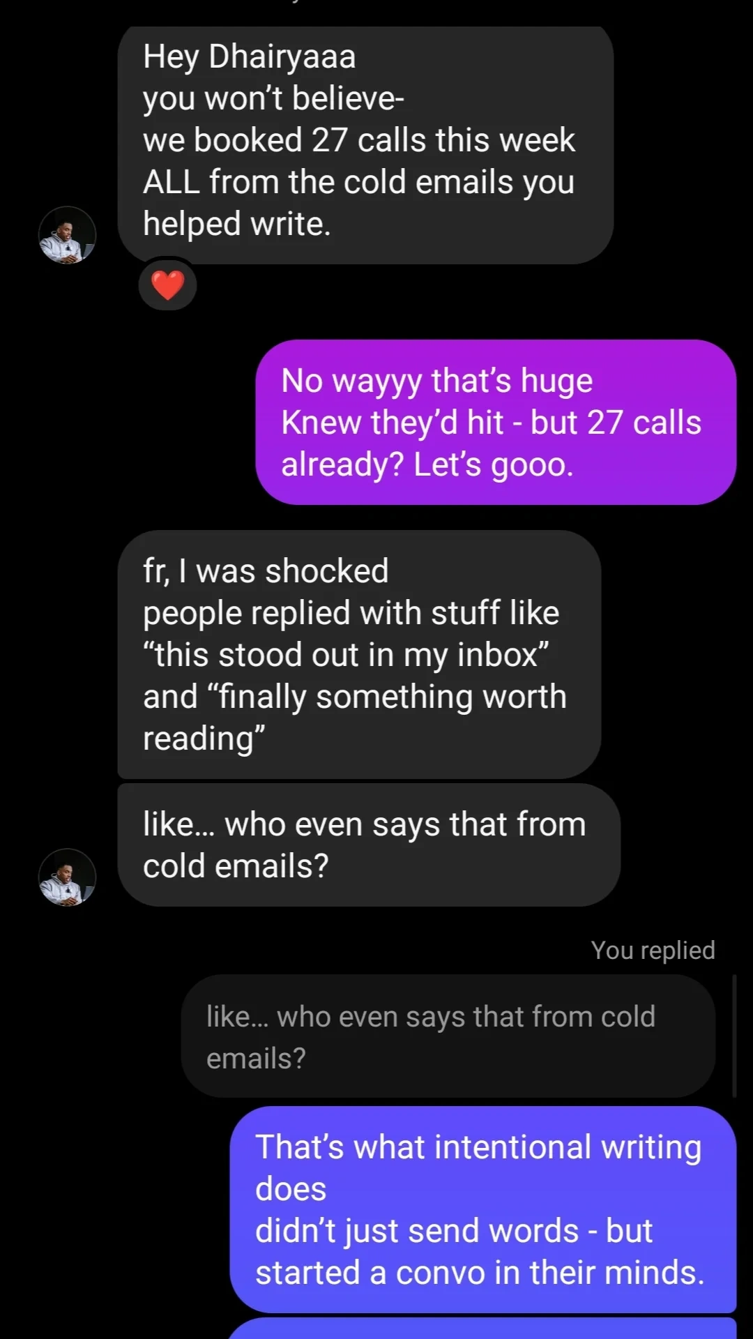 Cold Emails – emotional openers, frictionless flow, CTA’s that felt personal (not pushy)