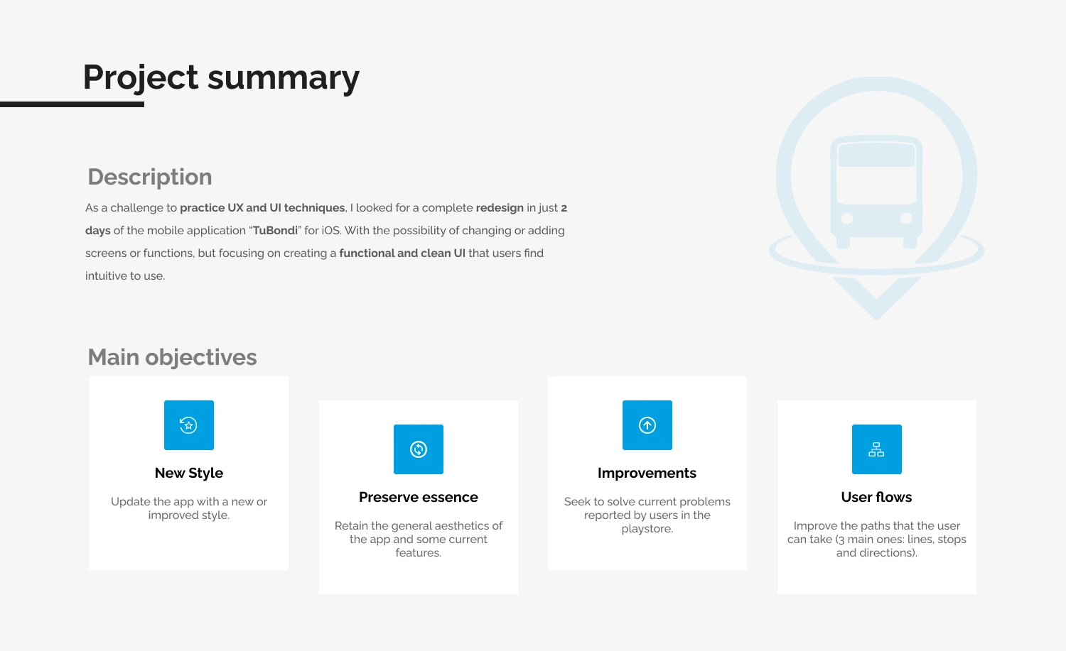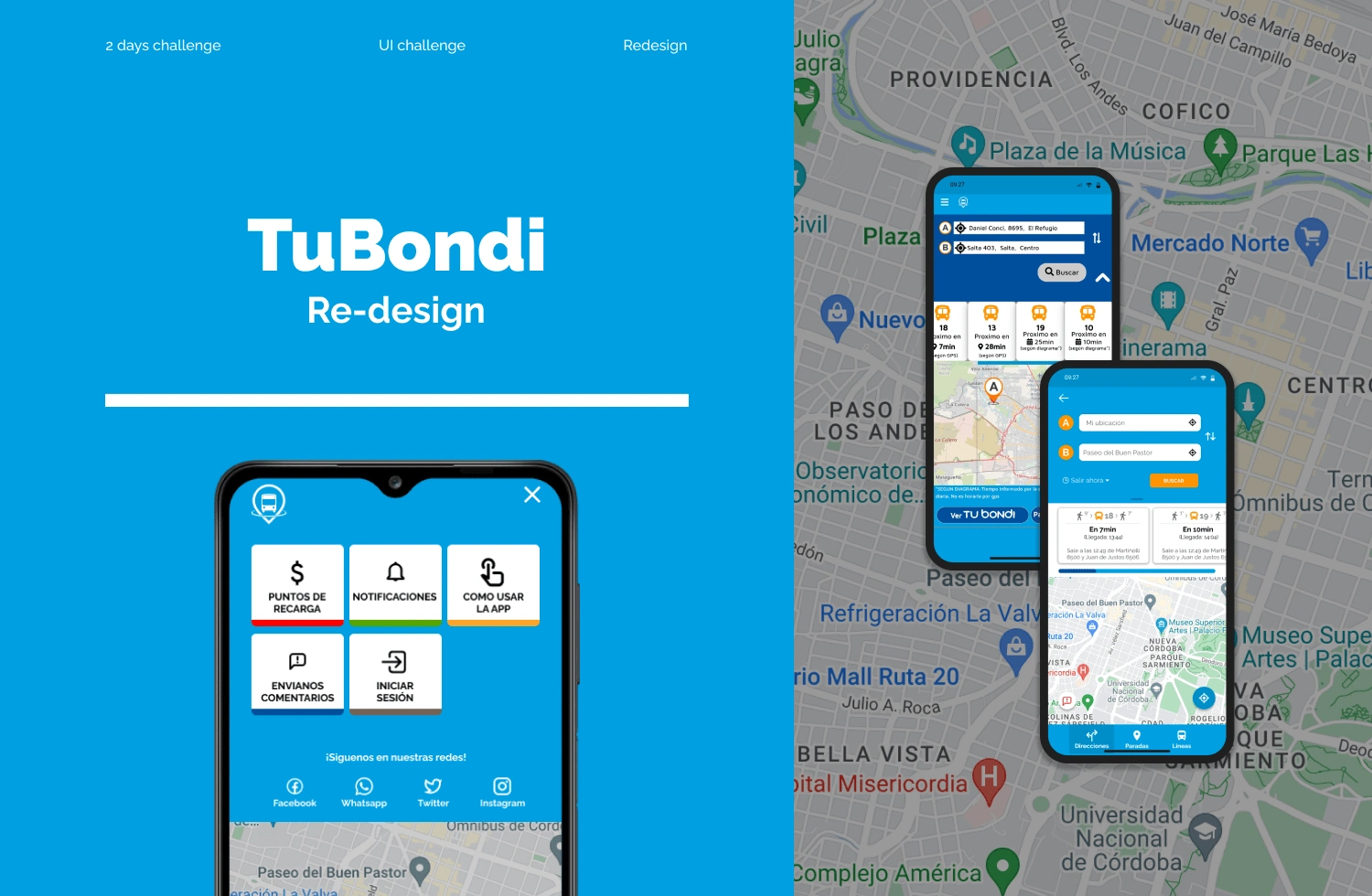 Redesign in just two days of the “TuBondi” mobile app for iOS with an UI focus.