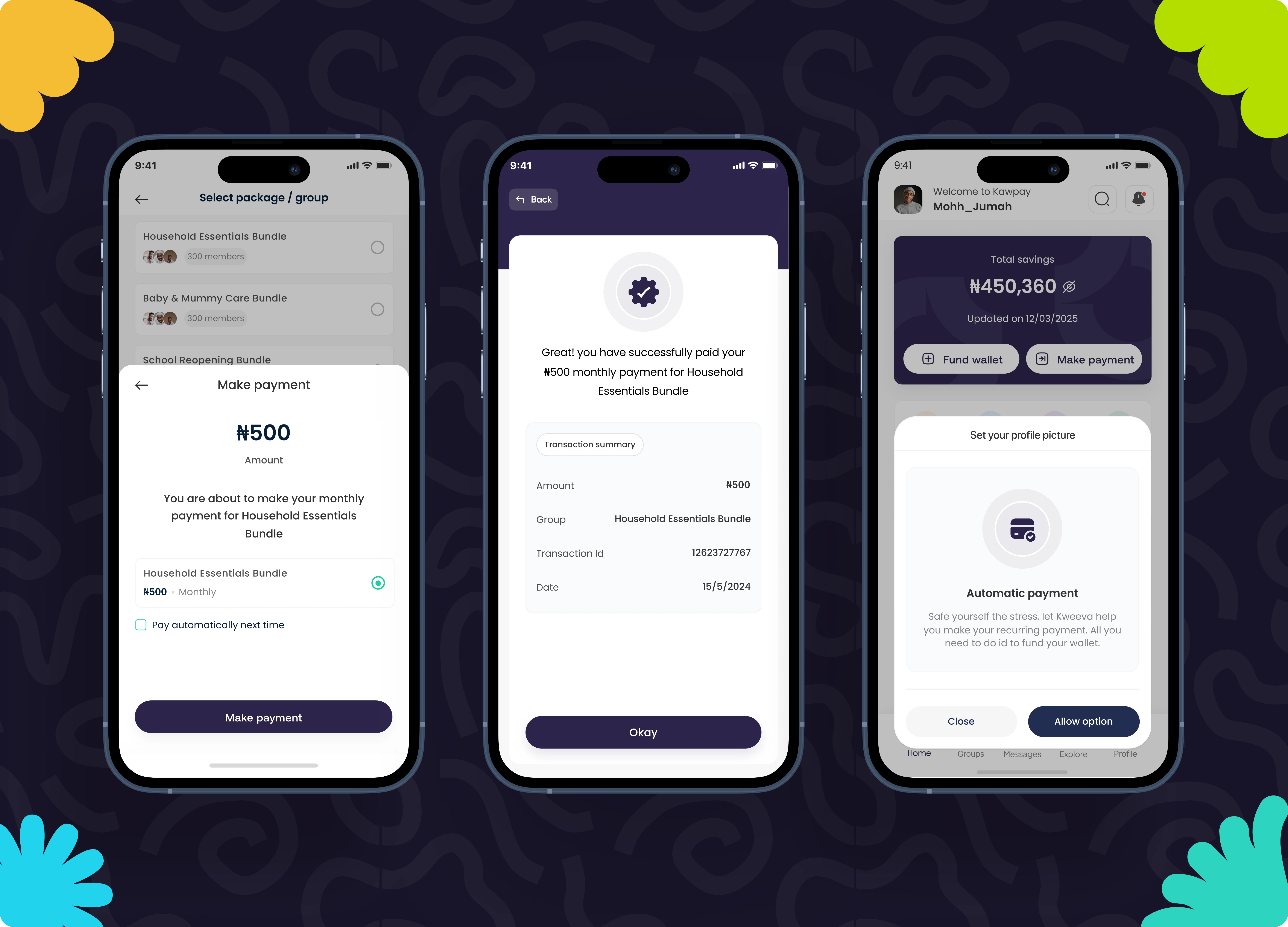 Kweeva is a community-driven digital savings platform that transforms traditional savings practices like Akawo and Ajo into mobile experiences with automated tracking, secure payments, and optional delivery of goods. This case study outlines the UX design work from problem framing to impact and future improvements.