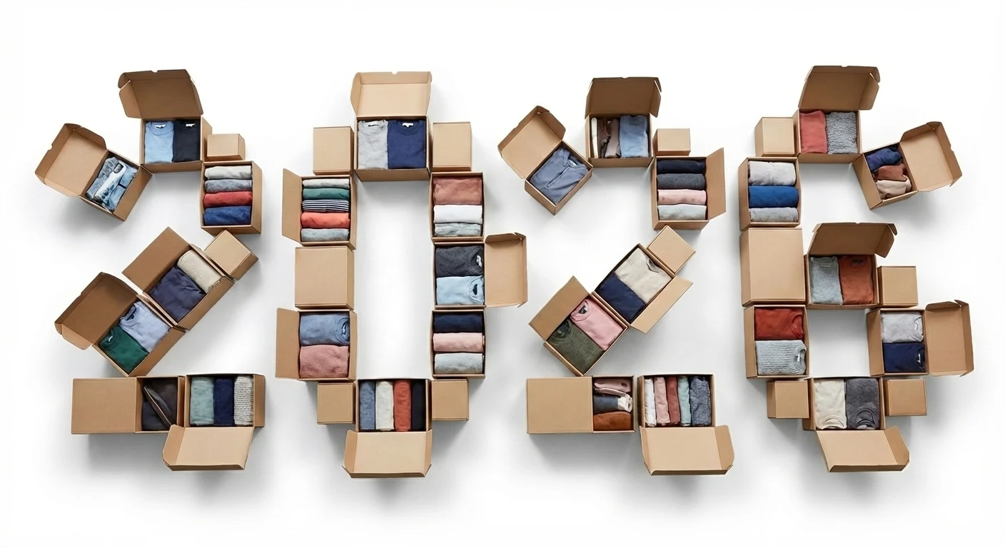The goal here was to showcase the depth and variety of the collection at a glance. By organizing premium apparel into a grid that forms the year "2026," we demonstrate to the customer that the brand is fully stocked and ready to meet demand. This layout acts as a visual catalog, proving the "Premium Apparel" claim through organized, high-density product placement.