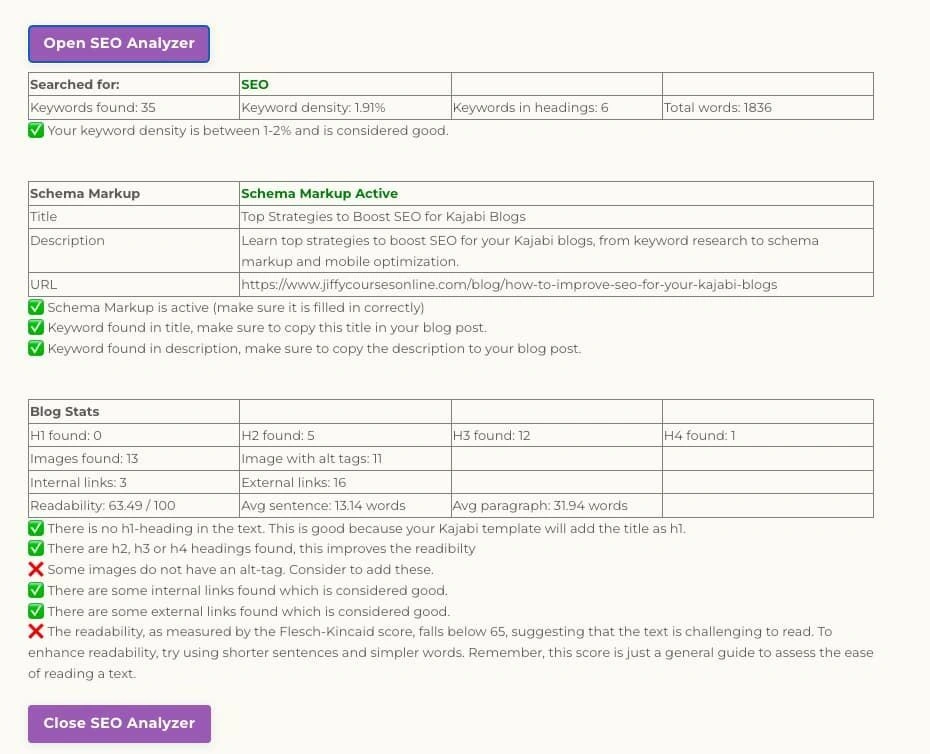 Help! I’m not tech-savvy. No problem! If you can create a Kajabi landing page, you can use the Awesome Blog Creator. Even the SEO tools are built for simplicity.