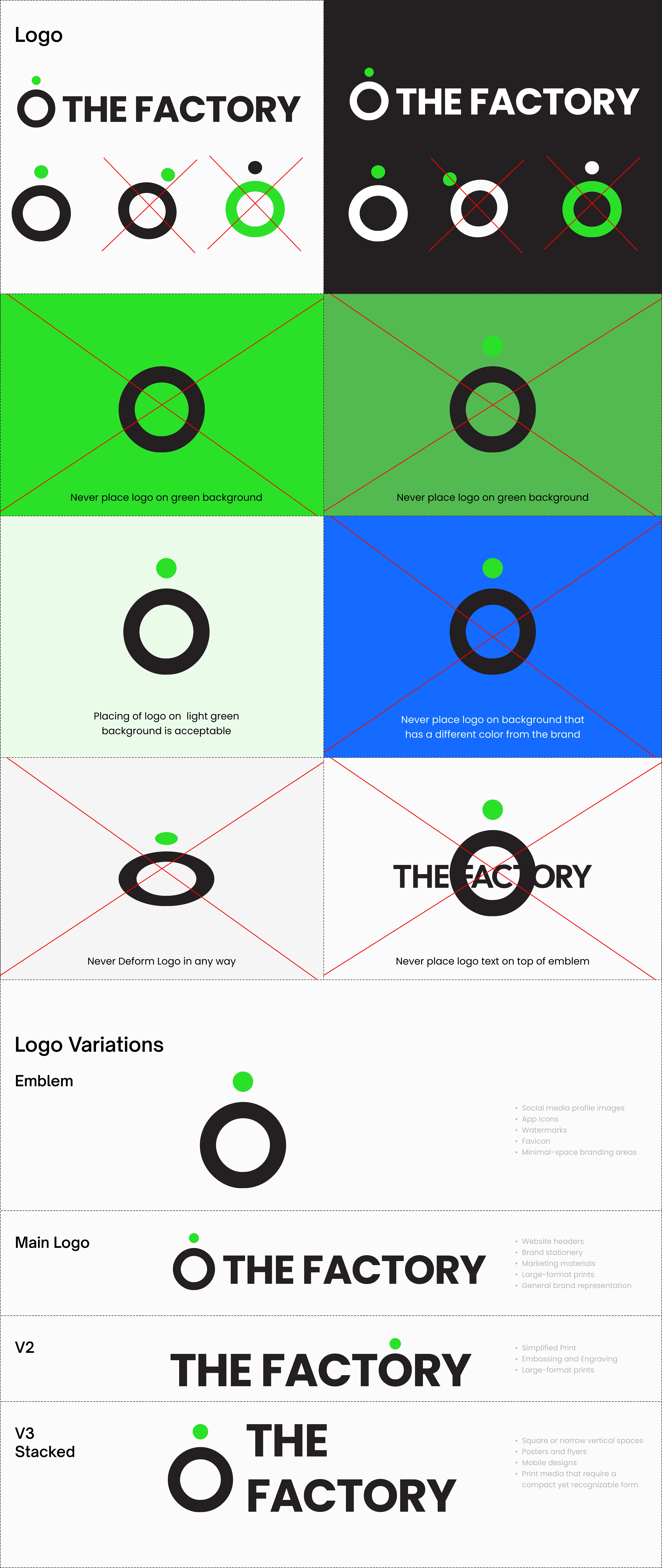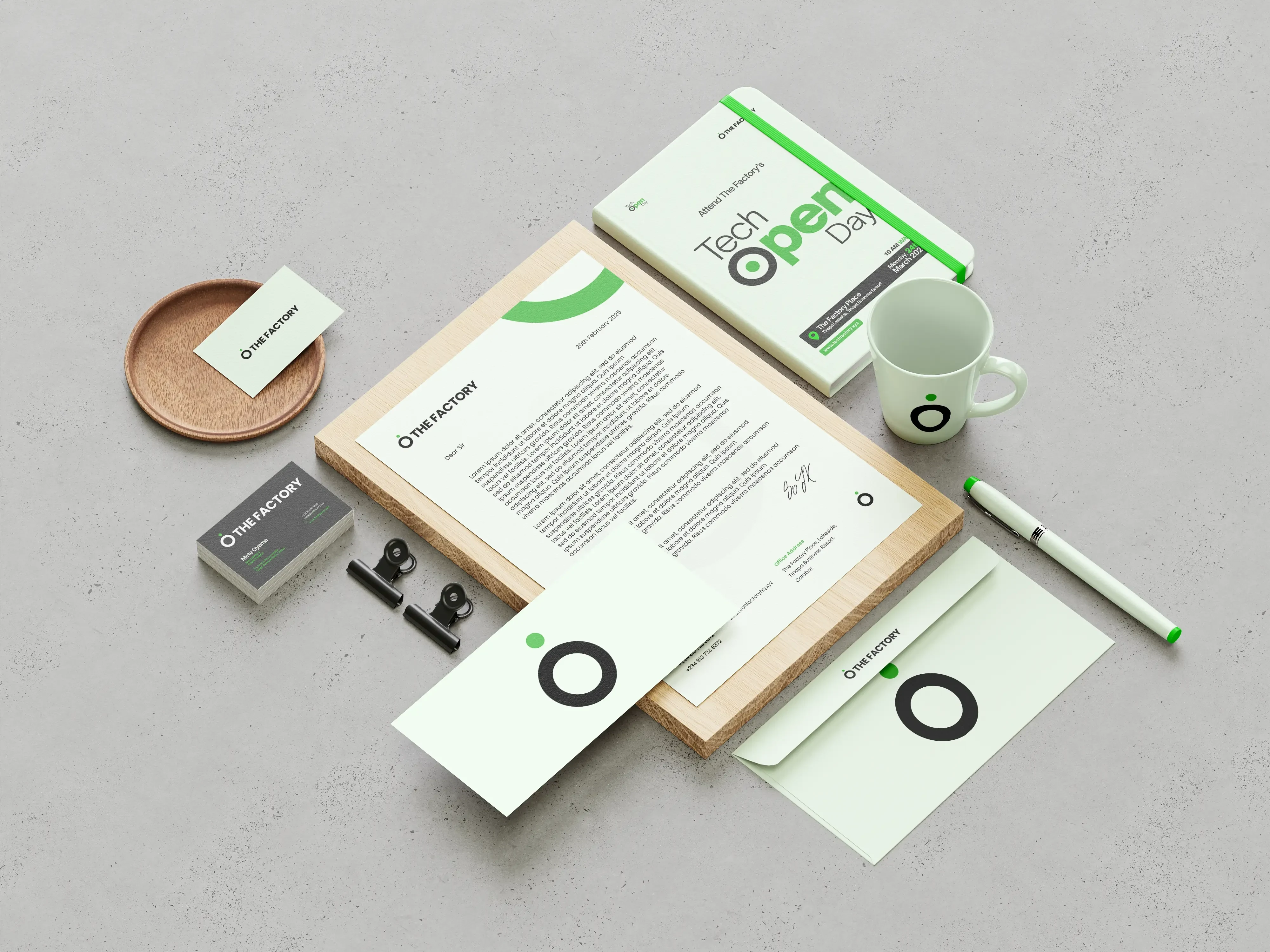 This brand identity project for The Factory focused on creating a cohesive visual system that communicates innovation, collaboration, and growth.