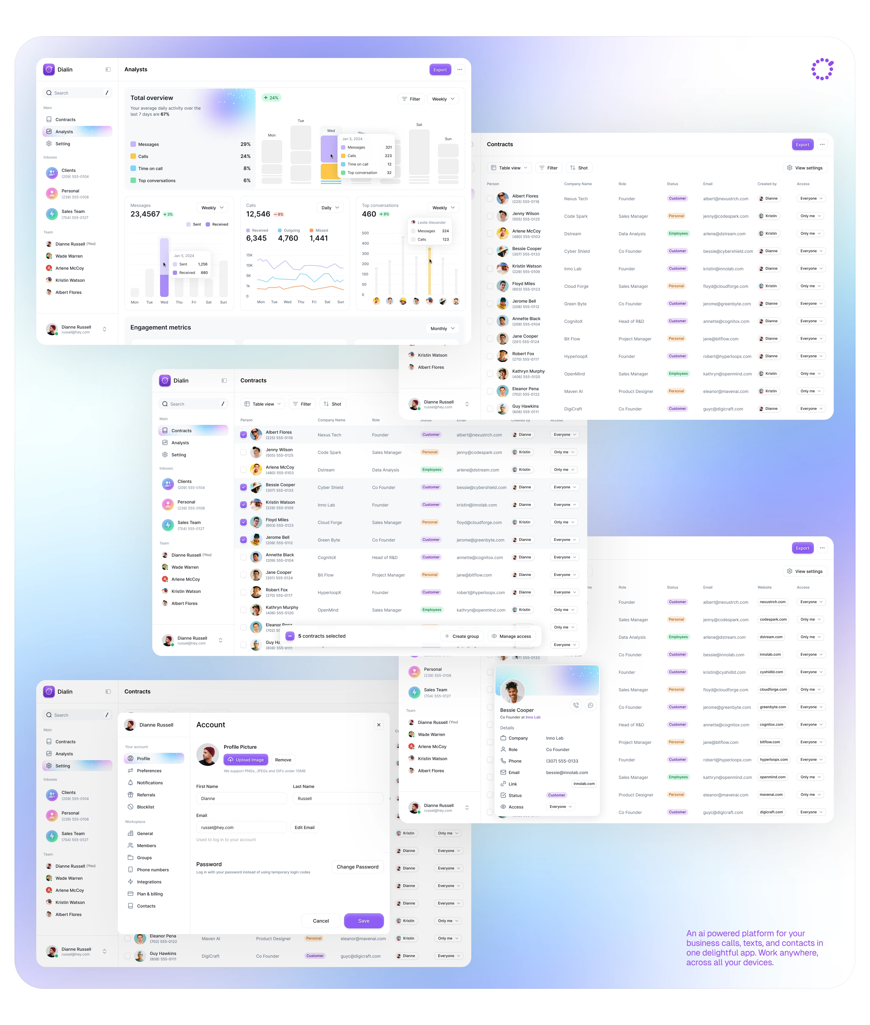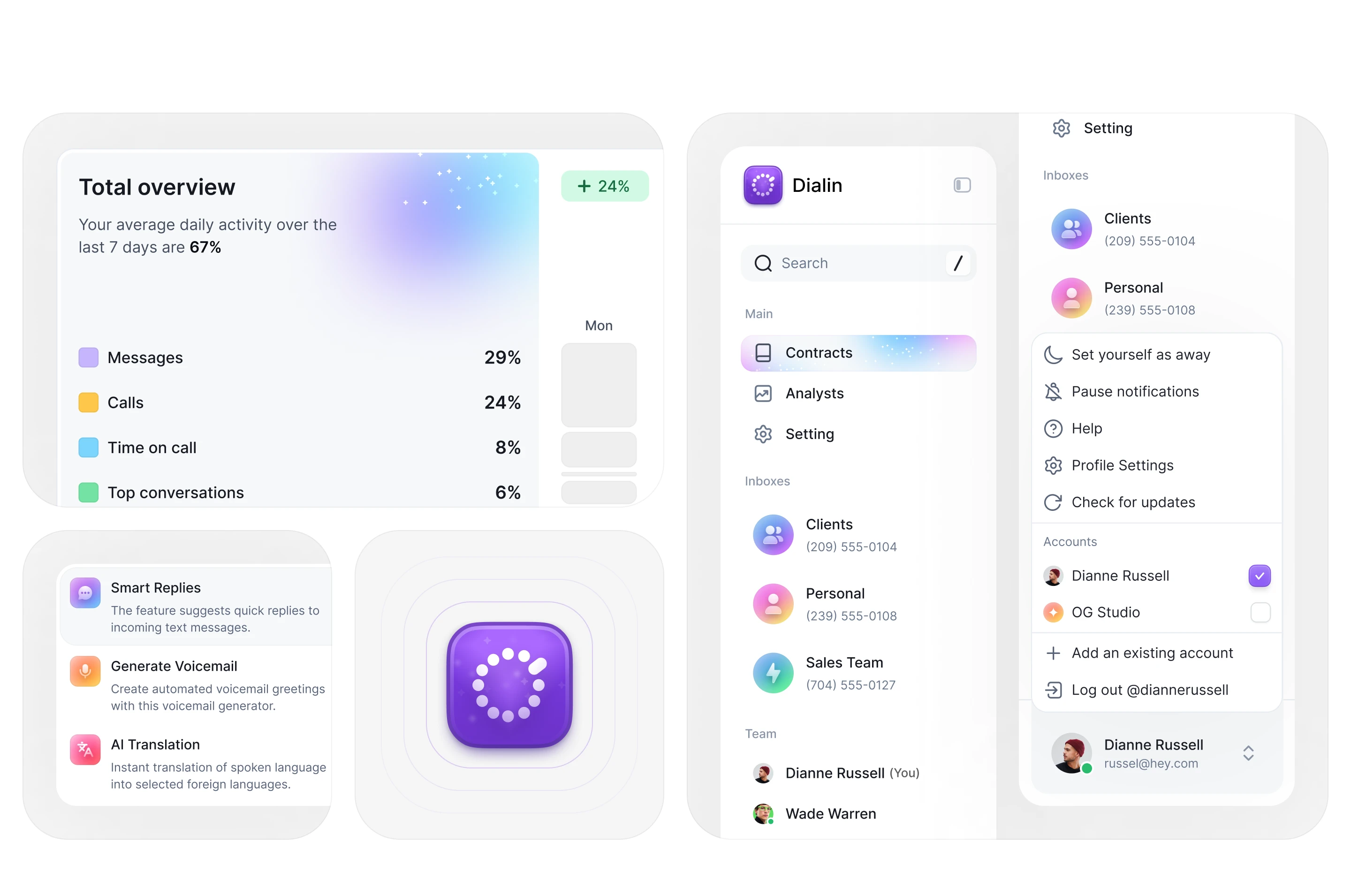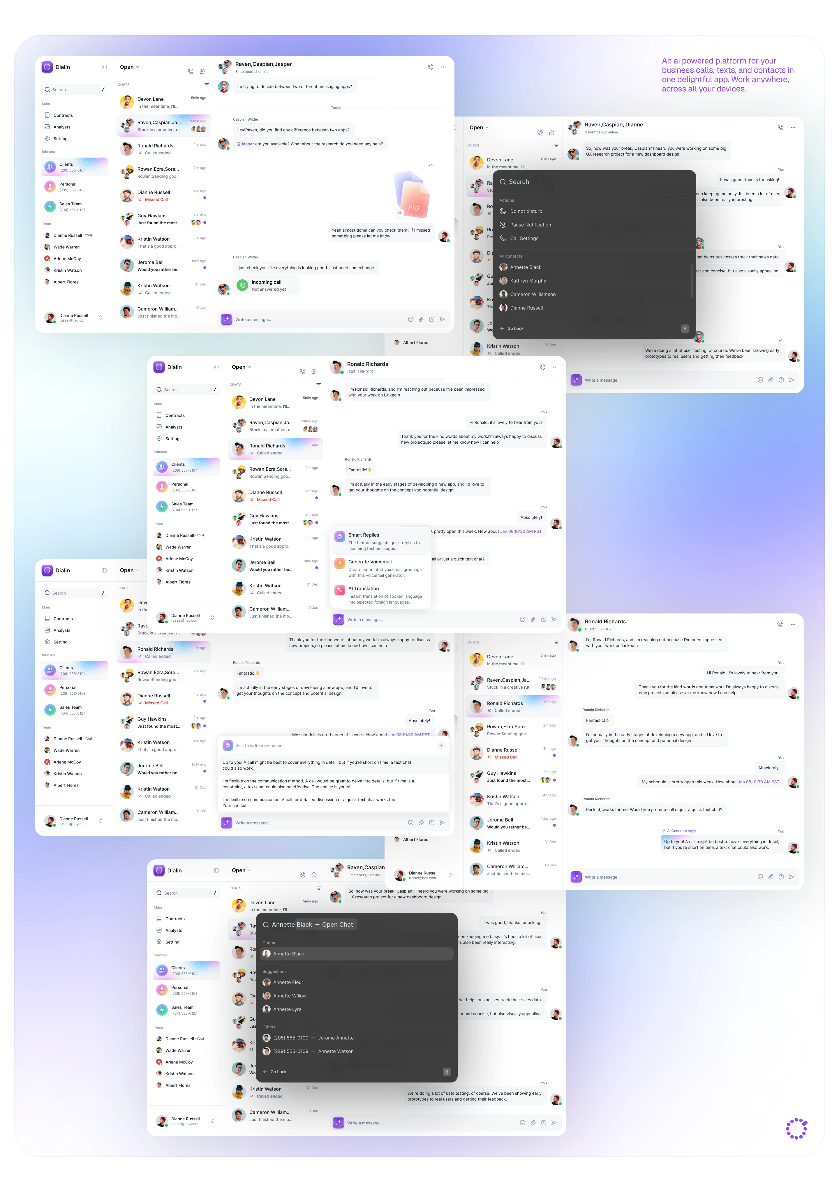 Dialin.ai simplifies business calls, texts, and contacts—real-time updates, all-in-one platform, fully synced across your devices.