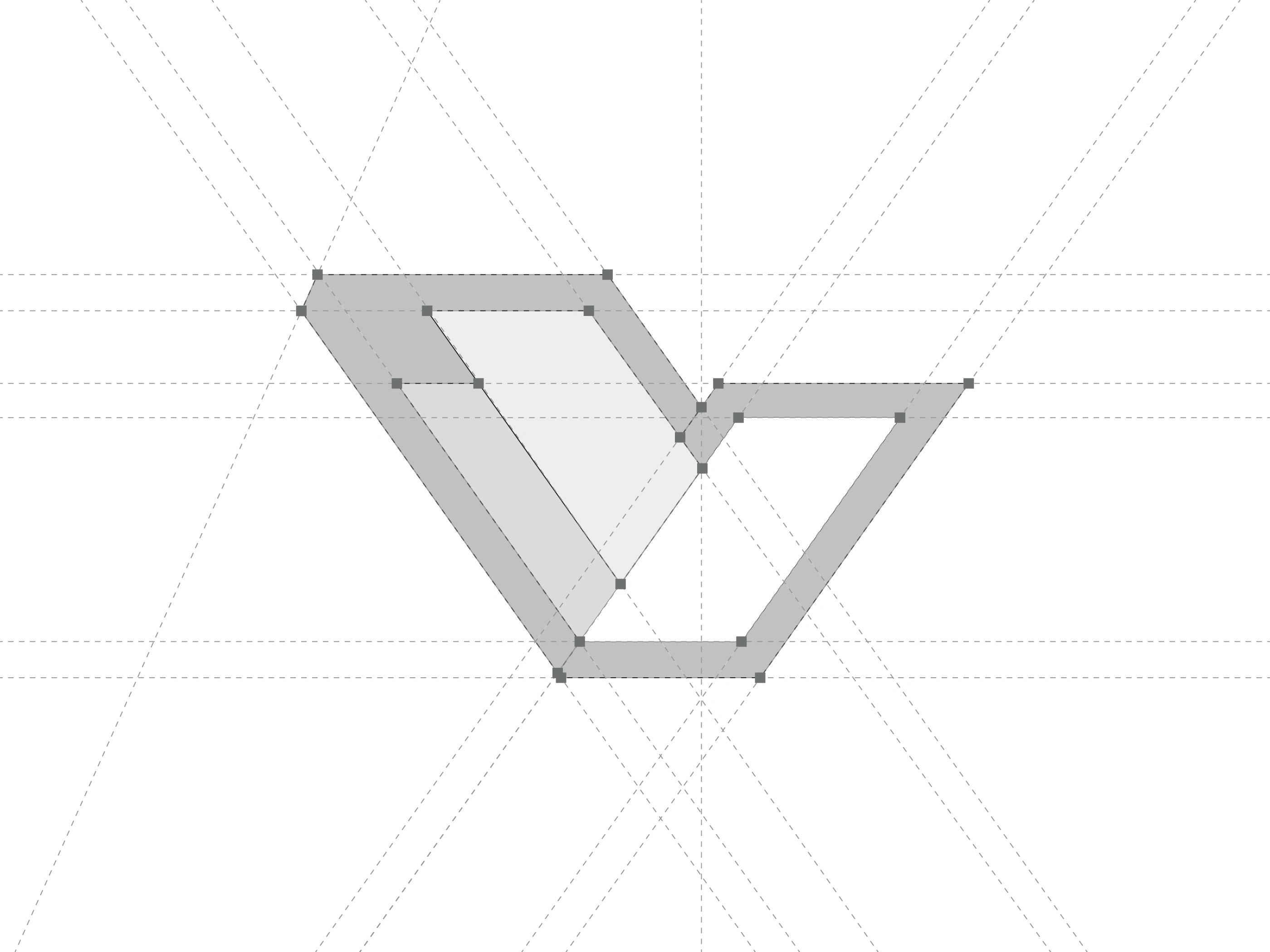 The sharp geometric form and overlapping structure express innovation, movement, and scalability—perfect for modern technology brands.