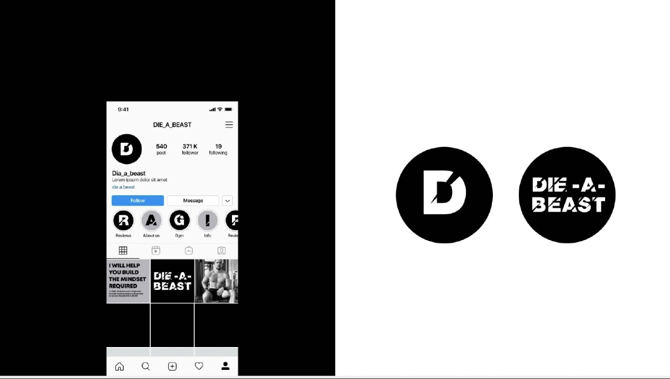 The task was to create brand identity for the project of person who helps people build the mindset required to fight diabetes every single day through healthy eating and exercise, so they can literally "die-a-beast"