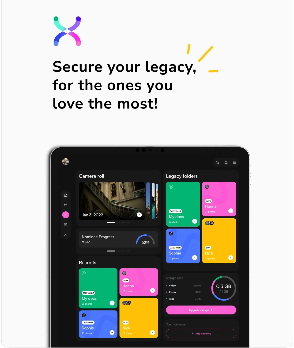 Crux Legacy is the UK's secure estate planning app that helps you create your online will, store documents safely, and protect those who matter most.