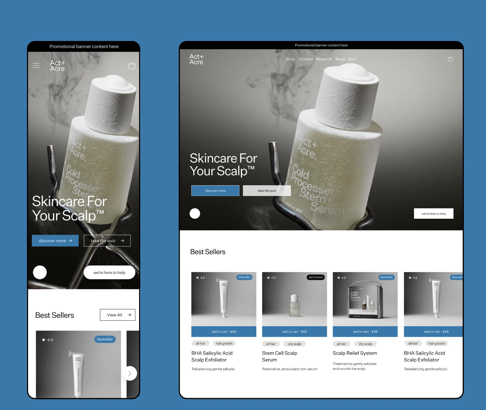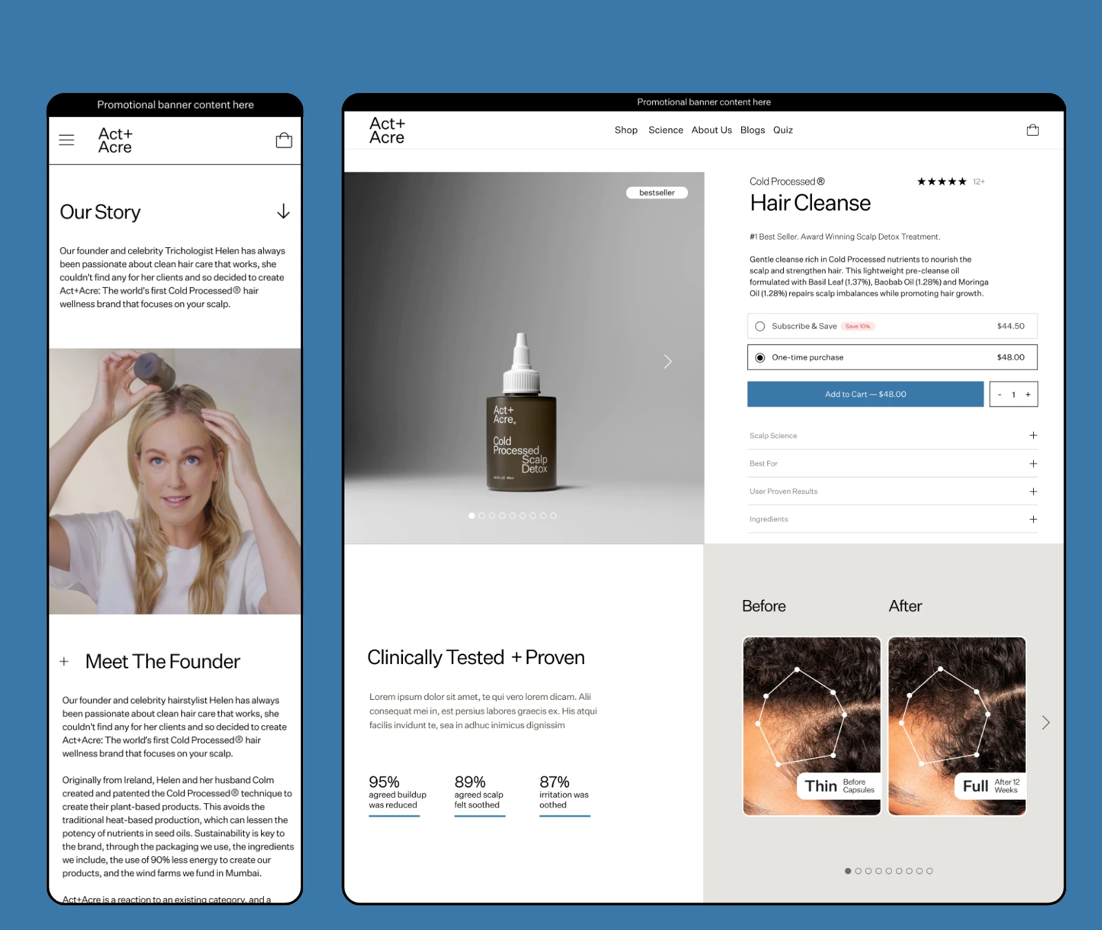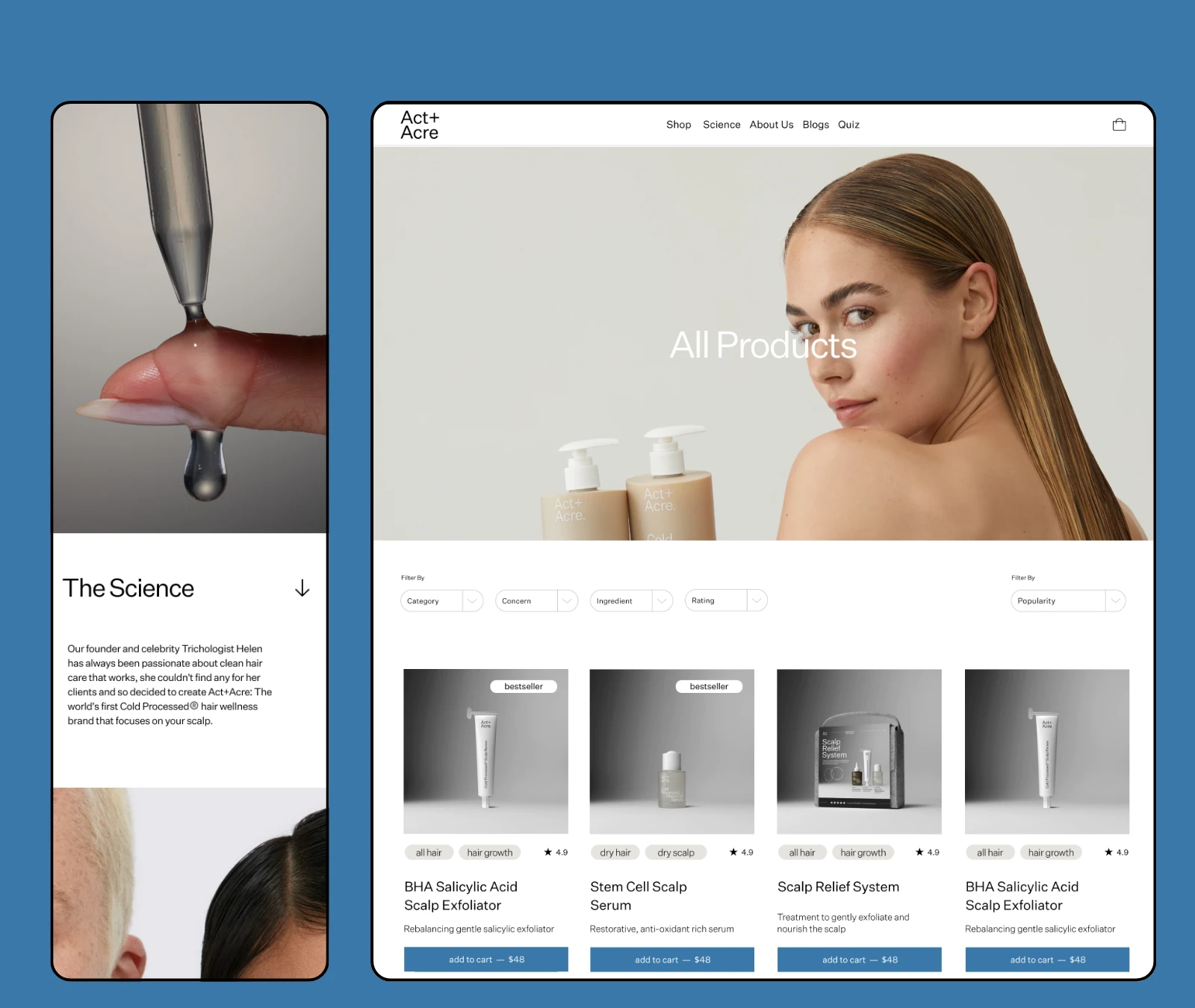 Act + Acre’s previous store wasn’t telling their story or selling it. They needed a platform that blended science, education, and product discovery without overwhelming the user.